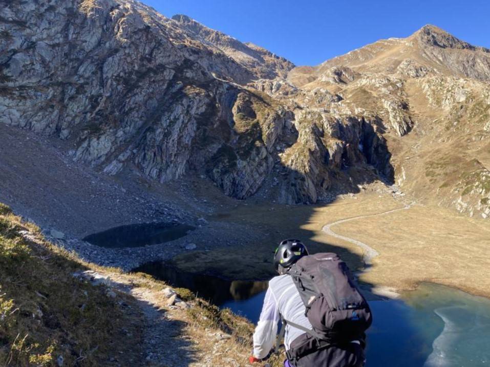 | 30000volt | la mulattiera del Sabbione quota 2100 | 30000volt | Colle Ovest del Sabbione | 30000volt | discesa sul lago della Vacca | 30000volt | il lungo vallone di discesa | 30000volt | passaggi caratteristici