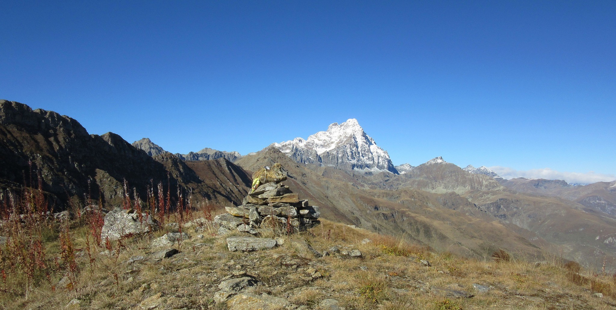Bella facile e panoramicissima , qualche attenzione nel traverso (pian Masche/Crest) breve tratto esposto ma discreta traccia a raggiungere l’omone e poi…