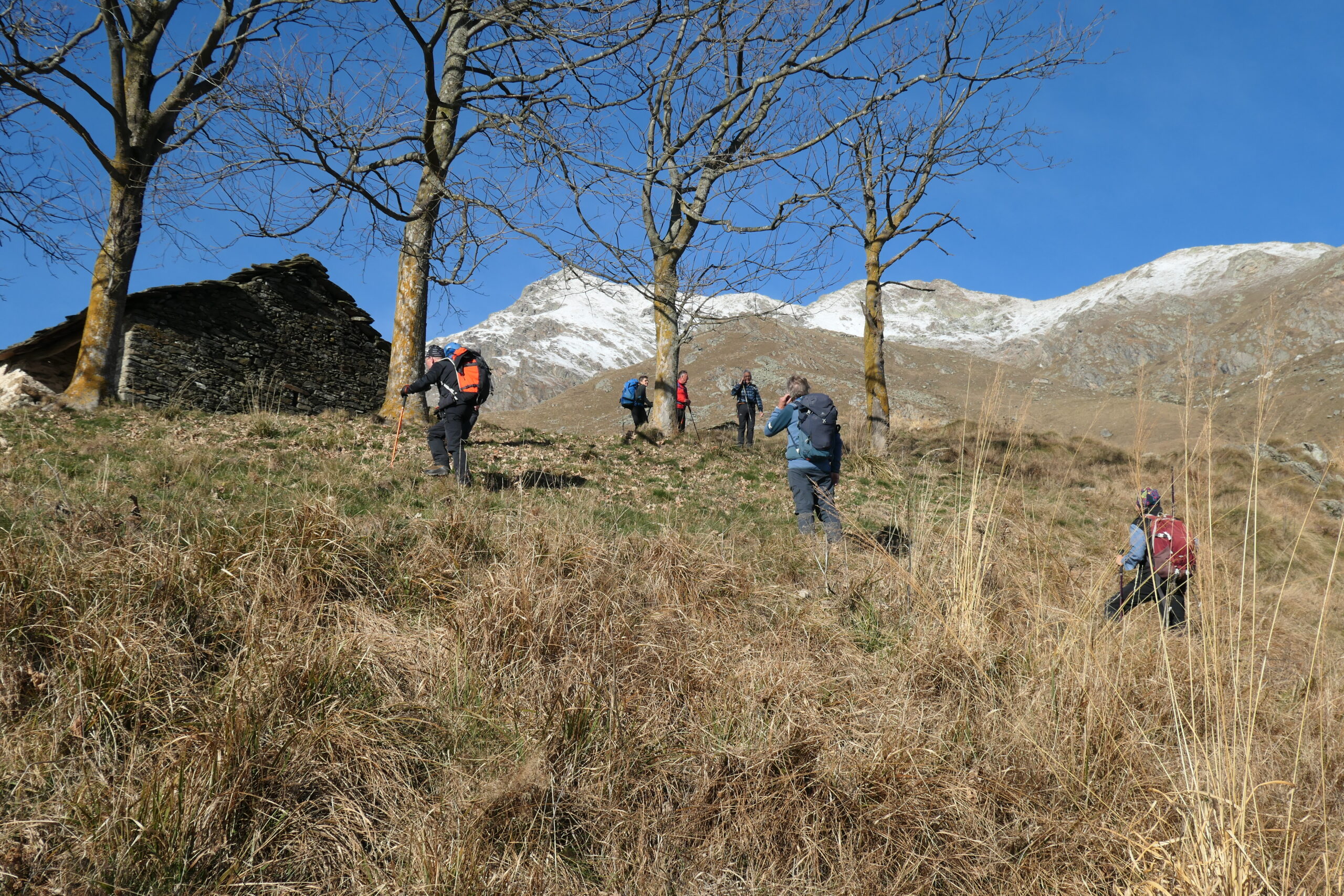 Bella e facile escursione, sterrata/sentiero, qualche cm di neve ma non crea problemi. Giornata poco fredda, esteso il panorama Compagnia di 11 amici