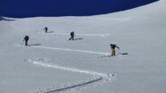 Arrivati sino al colle, vento e neve non hanno permesso la salita in punta. bella la discesa su farina intonsa, Tutto il gruppo in cima.