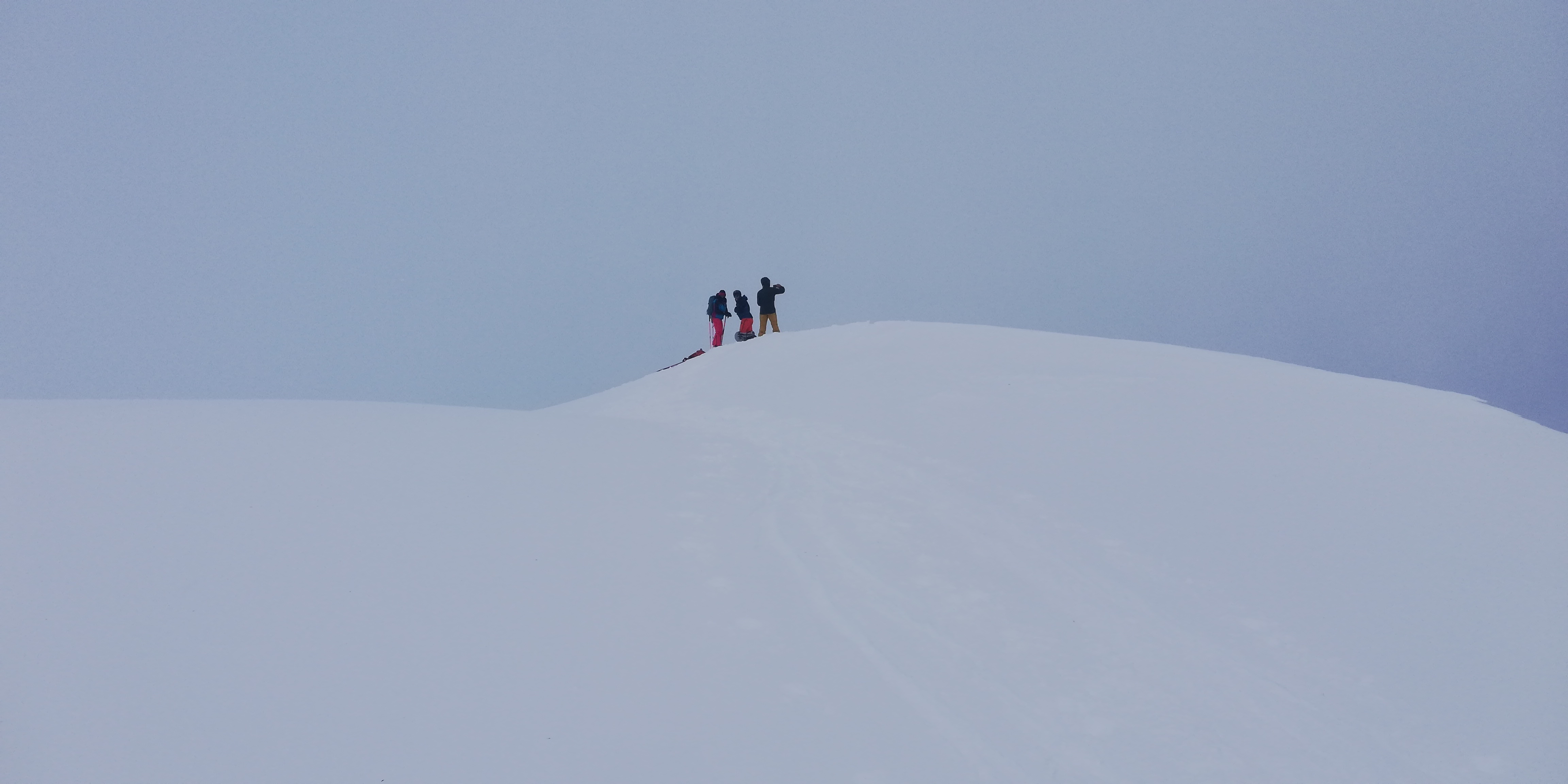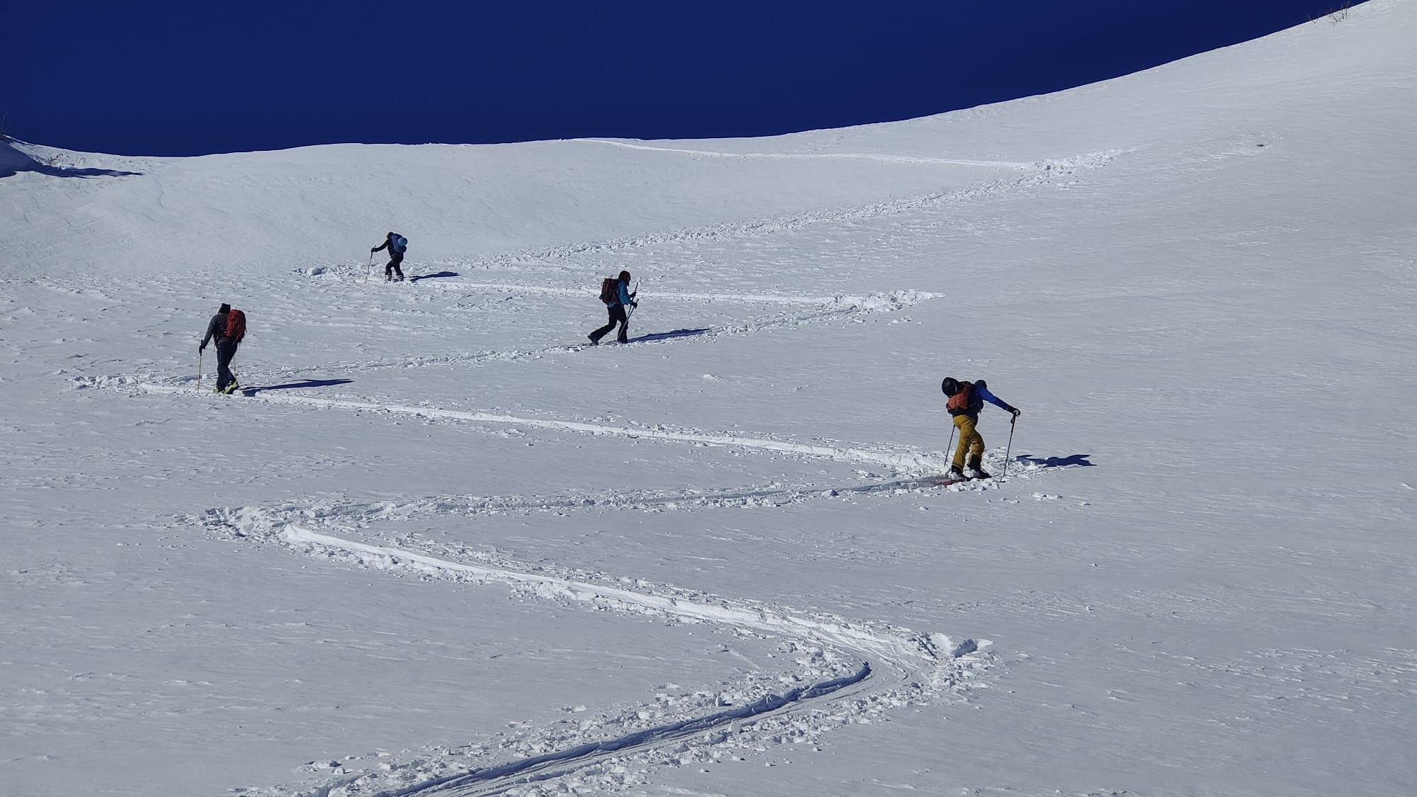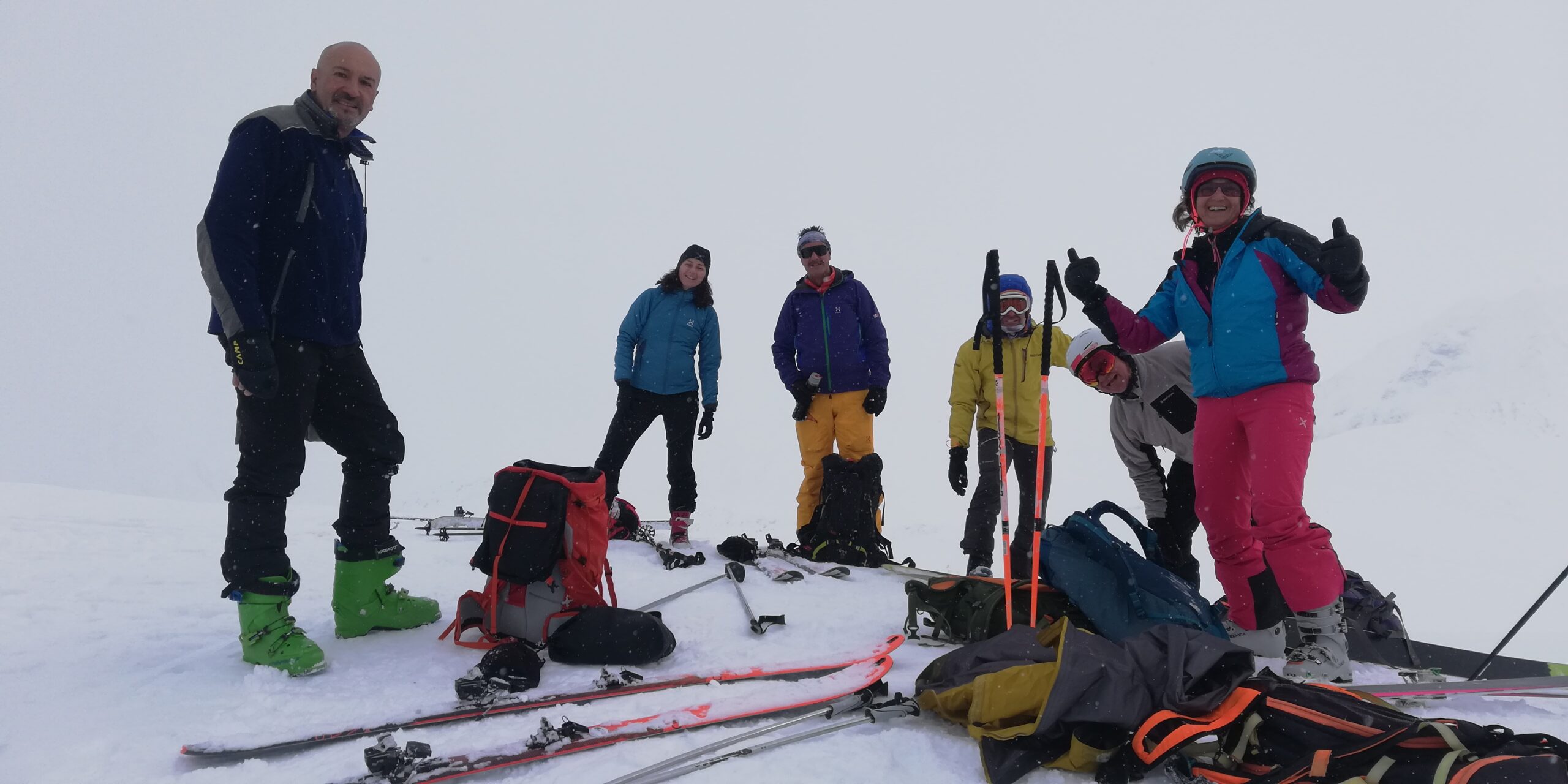 Saliti dal mare, salita scorrevole e veloce Discesa stupenda su polvere da fantascienza. Tutti e 12 in cima