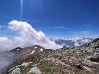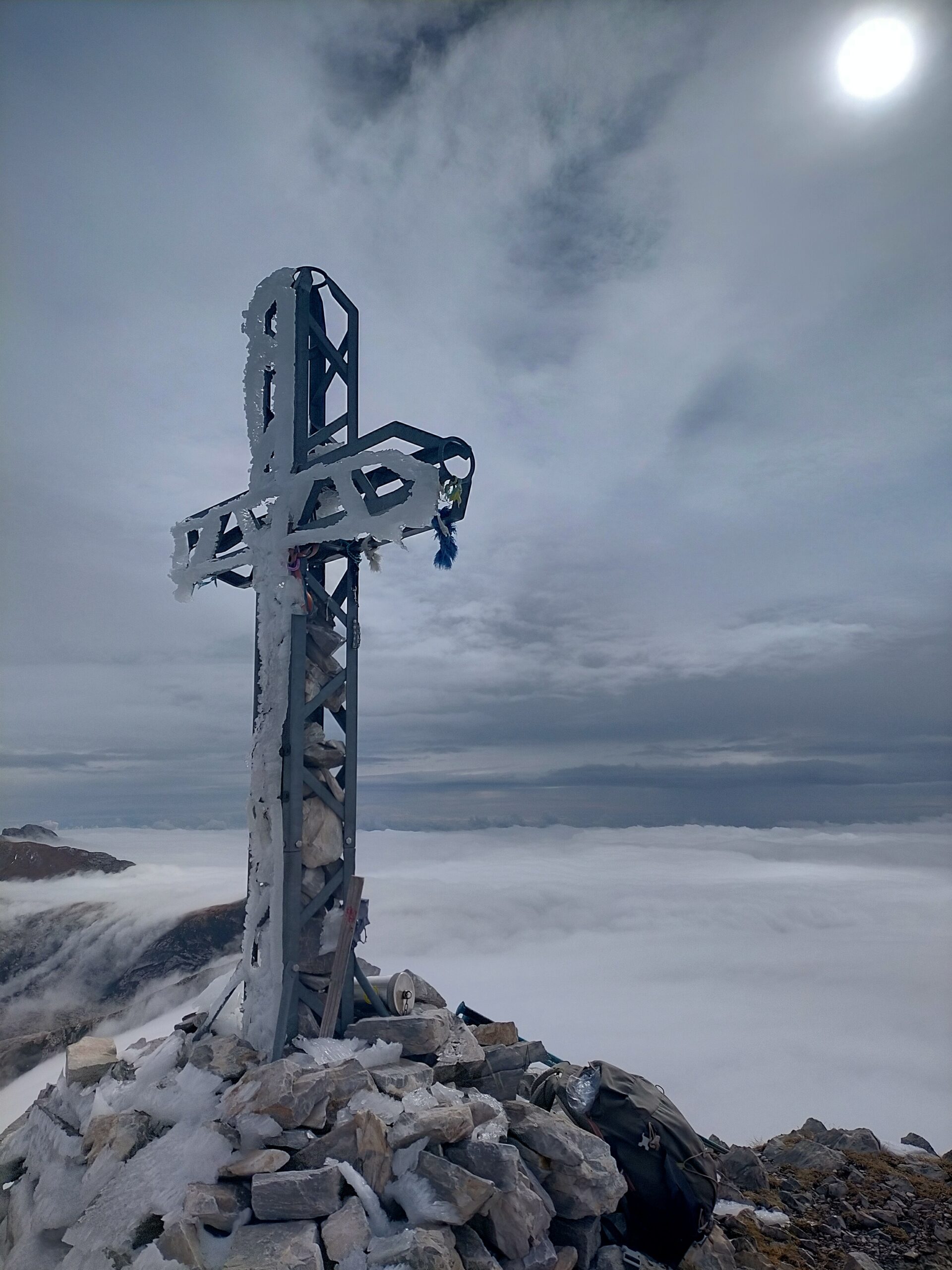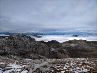Saliti dal Rif Mondovì in 3 ore circa. Itinerario avvolto dalla nebbia fino al colle delle saline, poi panorami surreali schiacciati tra le nubi sottostanti…