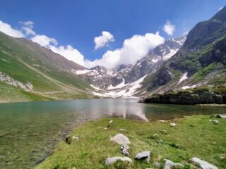 Saliti al lago in circa 2h e mezza, non c'è neve sul percorso. Verso il colle si vedono ancora due nevai negli ultimi 200mt sotto…