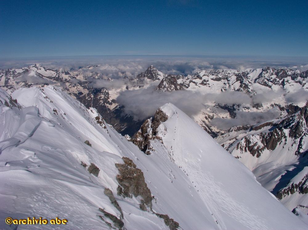 | abe | Arrivo al Dome de Neige con lo sfondo della Barre | abe | Glacier Blanc dal rifugio | abe | Barre des Ecrins | abe | Primi raggi del sole | abe | Dalla Barre uno sguardo al Dome de Neige | abe | Barre des Ecrins versante nord