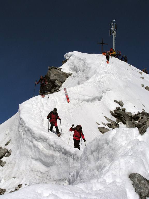 | abe | La cresta finale vista dalla vetta. | abe | La cima con le bandierine della gara. | abe | Dalla cima l'itinerario di salita | abe | Dalla cima verso le baite di Rossbodestafel | abe | parte superiore della gita | abe | Salita (in alto) e Discesa (in basso) | abe | Il Magenhorn | abe | Il Corbernas nella bufera. | abe | Corno Brunni e Punta Valrossa dalla cima dell'Helgenhorn