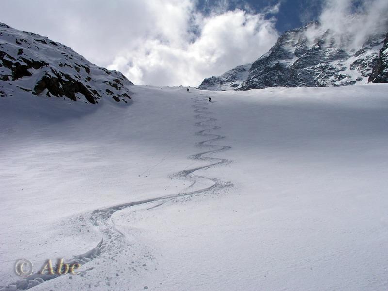 | abe | Cresta finale | abe | Cresta finale dal deposito sci | abe | Poco sopra l'Alpe Bodme | abe | All'uscita dal canale si vede la cima (sx) | abe | In discesa nella parte alta | abe | Dalla punta la cresta finale | abe | Nei pressi del colletto | abe | Al centro il colletto, a sinistra la cima | abe | Galenstock, Gross e Chli Bielenhorn | abe | La cima | abe | Ultima parte di salita | abe | Il piano sotto l'Albert Heim hutte | abe | In salita. | abe | Einshorn e Nufenen. | abe | Quasi in punta?