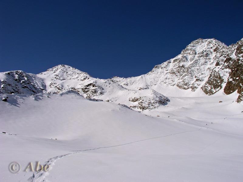 | abe | Arrivo del sole al Col de la Brenva | abe | Uscita al Col du Mont Maudit | abe | In attesa del proprio turno sotto al Col du Mont Maudit | abe | Mont Blanc du Tacul al tramonto | abe | Arrivo in vetta | abe | In salita poco oltre Pian di Verra sup. | abe | Rif. Mezzalama | abe | I Breithorn dal rif. Guide della Val d'Ayas | abe | Alla base dello scivolo ovest | abe | Dalla cima sguardo verso nord | abe | Dalla vetta sguardo verso sud | abe | Il pendio che porta al colle del Pizzo Valletta. | abe | Dal colle del Pizzo Valletta il Lucendro | abe | Dalla cima del Lucendro: Pizzo della Valletta, quota 2758 e La Fibbia | abe | Sopra l'Adlerpass