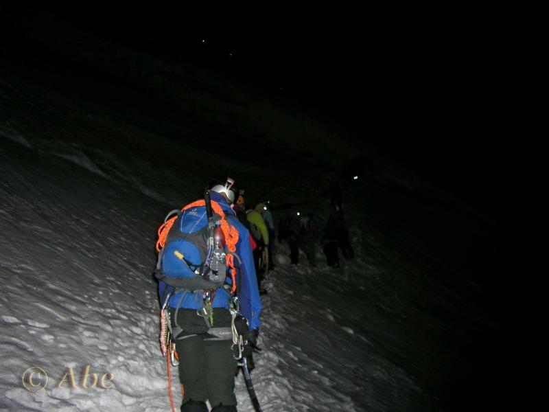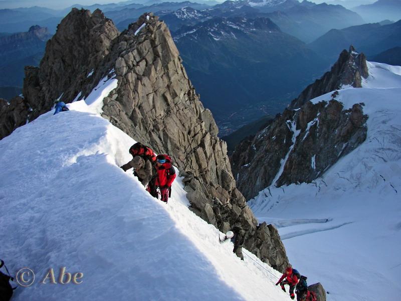 | abe | Mont Blanc du Tacul al tramonto | abe | In attesa del proprio turno sotto al Col du Mont Maudit | abe | Uscita al Col du Mont Maudit | abe | Arrivo del sole al Col de la Brenva | abe | La cima (Mur de la Cote in primo piano) dal Col de la Brenva | abe | Pendio finale | abe | Dalla cima uno sguardo indietro | abe | Cima - sguardo verso est | abe | Cima - sguardo verso nord | abe | Cima - sguardo verso sud | abe | In arrivo al Col de la Brenva