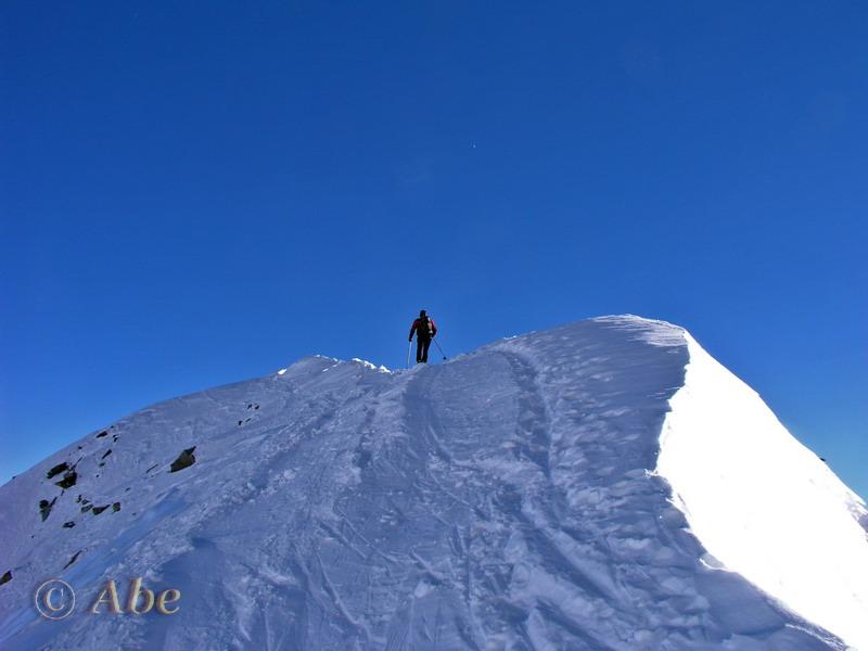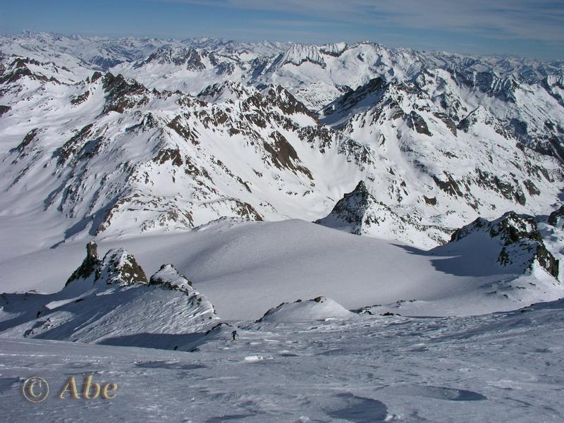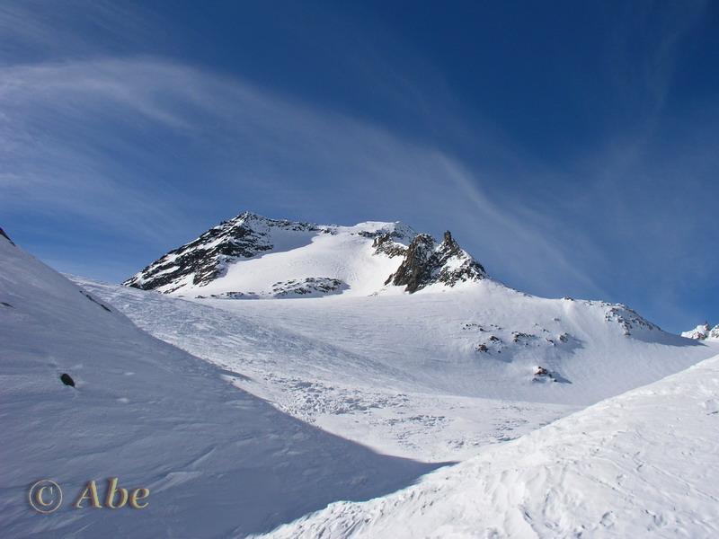 | abe | Vallone di salita (Bodmertalli) da circa 2400. | abe | Arrivo in cresta. | abe | Buona neve (e curve) in discesa. | abe | Bietschhorn. | abe | Aletschhorn.