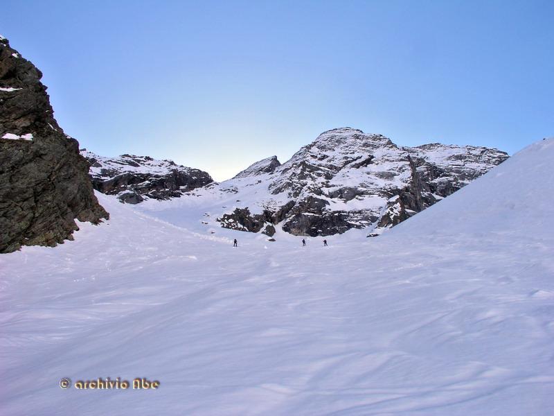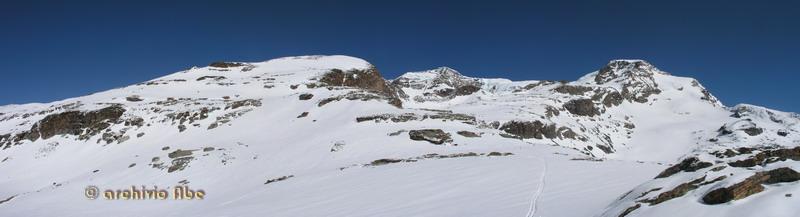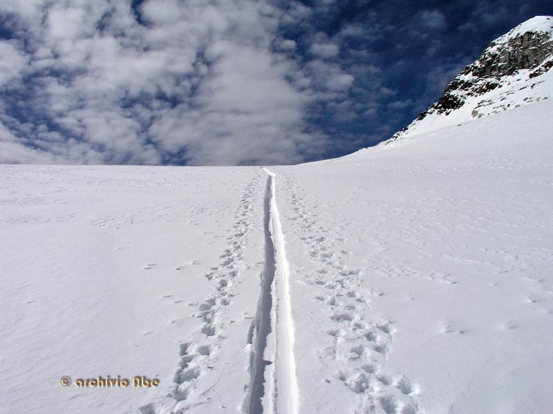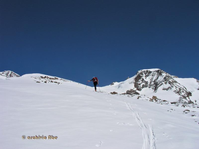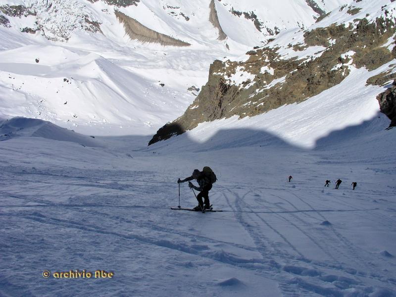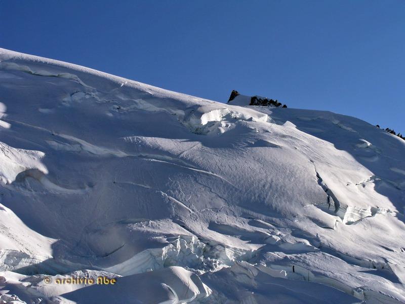 | abe | Primo sole sulla Est del Rosa. | abe | Inizio del canale Chiovenda. | abe | Parte alta del canale. | abe | La Madonnina di vetta. | abe | Cima del Pizzo Bianco. | abe | Ingresso del canale. | abe | Parte alta del canale in discesa. | abe | Parte finale del canale su morbido velluto. | abe | Annata magra per il ghiacciaio del Monte Rosa. | abe | La Parete. | abe | Punta Grober, cresta nord-est.