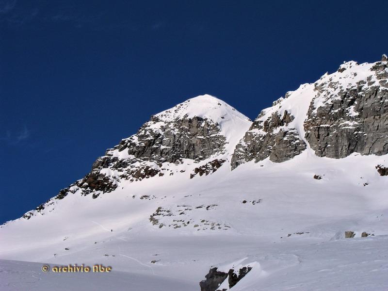 | abe | Finsteraarhorn | abe | Pendio di accesso alla Bocchetta di Formazzora. | abe | Dalla cima il Marchhorn. | abe | Itinerario di salita dall'Alpe Val d'Olgia