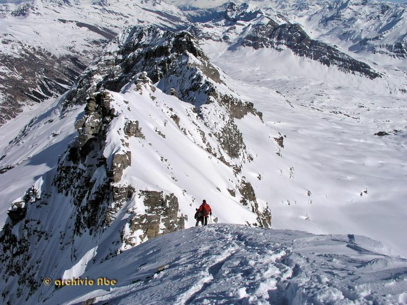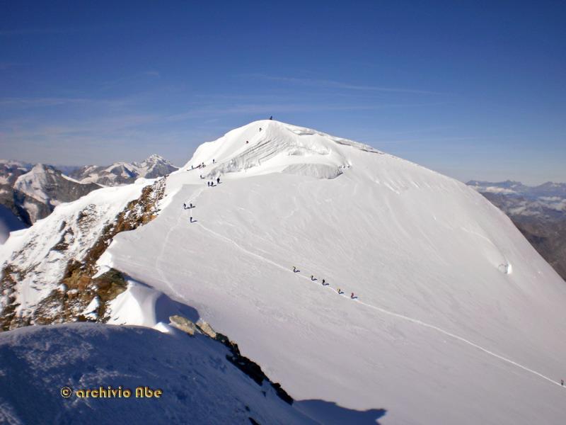 | abe | Lyskamm e Piramide Vincent. | abe | Parte finale. | abe | La cresta finale. | abe | Croce di vetta. | abe | Fletschhorn, parete nord. | abe | Mischabel. | abe | Splendida fioritura primaverile. | abe | Il Boshorn visto da Nideralp. | abe | Primo sole sulla Est del Rosa. | abe | Inizio del canale Chiovenda. | abe | Parte alta del canale. | abe | La Madonnina di vetta. | abe | Cima del Pizzo Bianco. | abe | Ingresso del canale. | abe | Parte alta del canale in discesa.