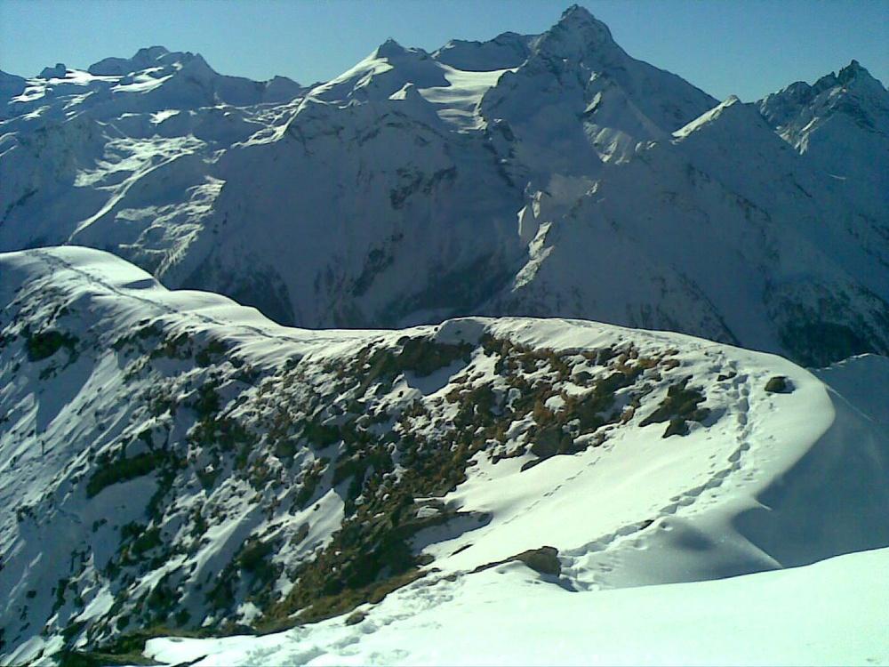 Bel freddo e vento sulla cresta: ambiente super invernale on bella neve (una bella spanna) anche se sotto si sentono le vecchie tracce.