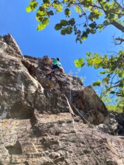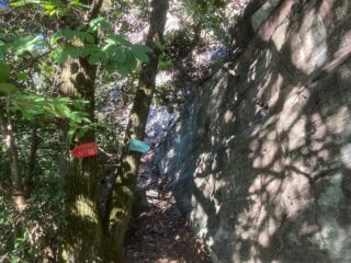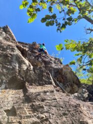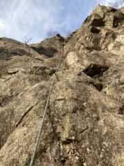 Una volta giunti alla base della falesia, per raggiungere l’attacco delle tre vie, da tre tiri ciascuna, arrampicare su un terzo grado con l’ausilio…