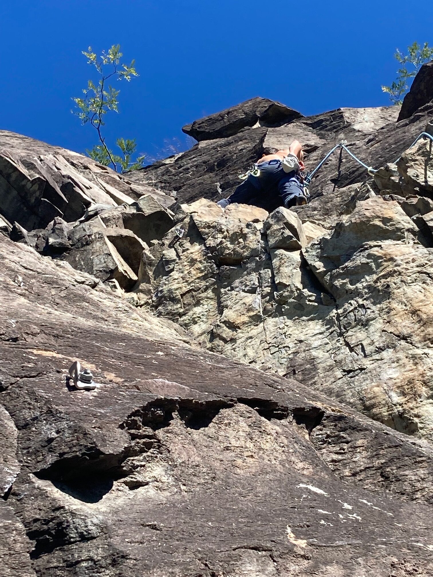 Piacevole arrampicata in un ambiente superbo che si affaccia sulla Val Devero. Belle le placchette di rame con i nomi delle vie incisi. Gradi…