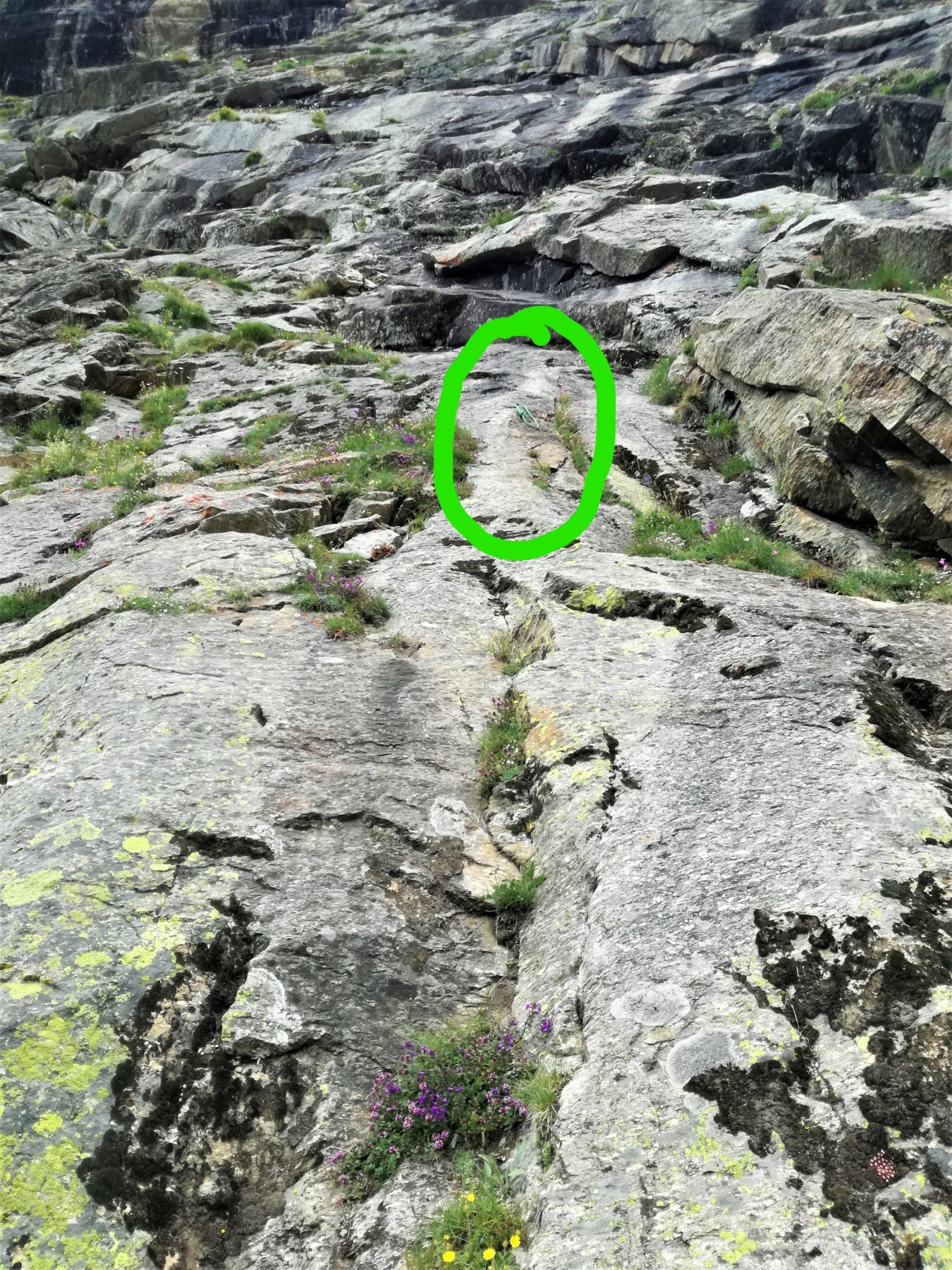 | agilulfo55 | Ometto dove parte il sentiero che porta al bivacco appena sotto il lago | agilulfo55 | Il punto in cui parte la scorciatoia, segnalata da ometti | agilulfo55 | Cordone verde allo spit verde (non molto fashion, ma ...) | agilulfo55 | Sosta sbagliata del primo tiro (cordone bianco). La sosta giusta è più a destra, con due spit e catena