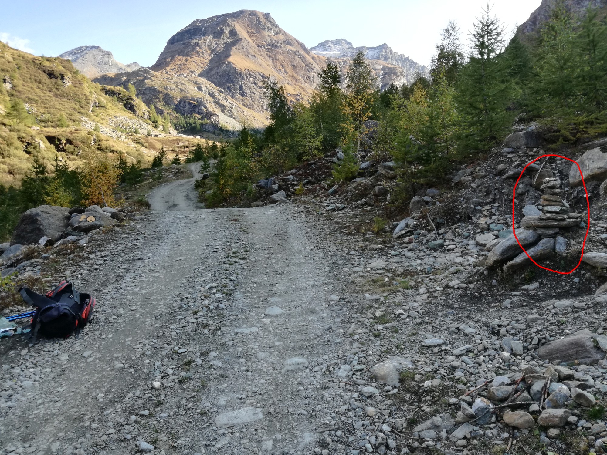 | agilulfo55 | Ometto dove parte il sentiero che porta al bivacco appena sotto il lago | agilulfo55 | Il punto in cui parte la scorciatoia, segnalata da ometti