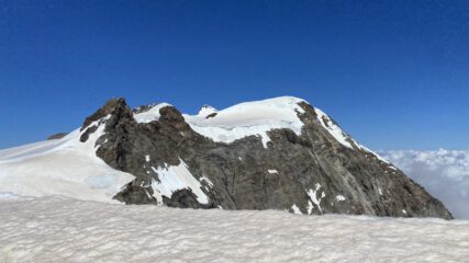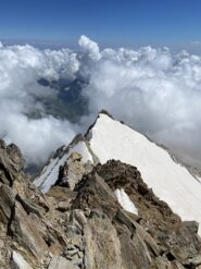 Cresta pulita. Ghiacciaio di Bors senza crepe, ghiacciaio del Lys abbastanza chiuso. Non abbiamo mai calzati i ramponi lungo l’itinerario di cresta, la sella nevosa…