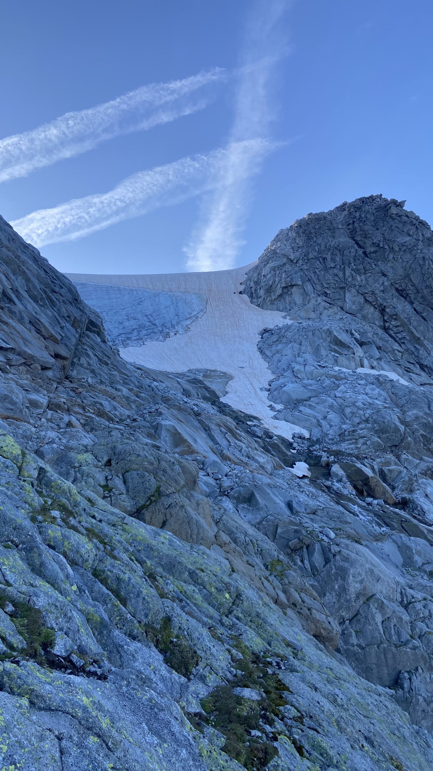 Via Terzulli pulita. Catene nuove in molti punti. Ghiacciaio senza rigelo e con traccia ben fatta, si percorre senza ramponi senza problemi.