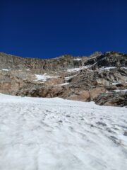 Ancora un po' di neve lungo il sentiero. Utili i ramponcini per tirare dritto sui nevai, ma si possono spesso aggirare. Unico passaggio obbligato su…