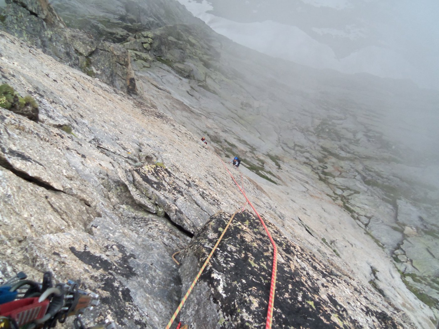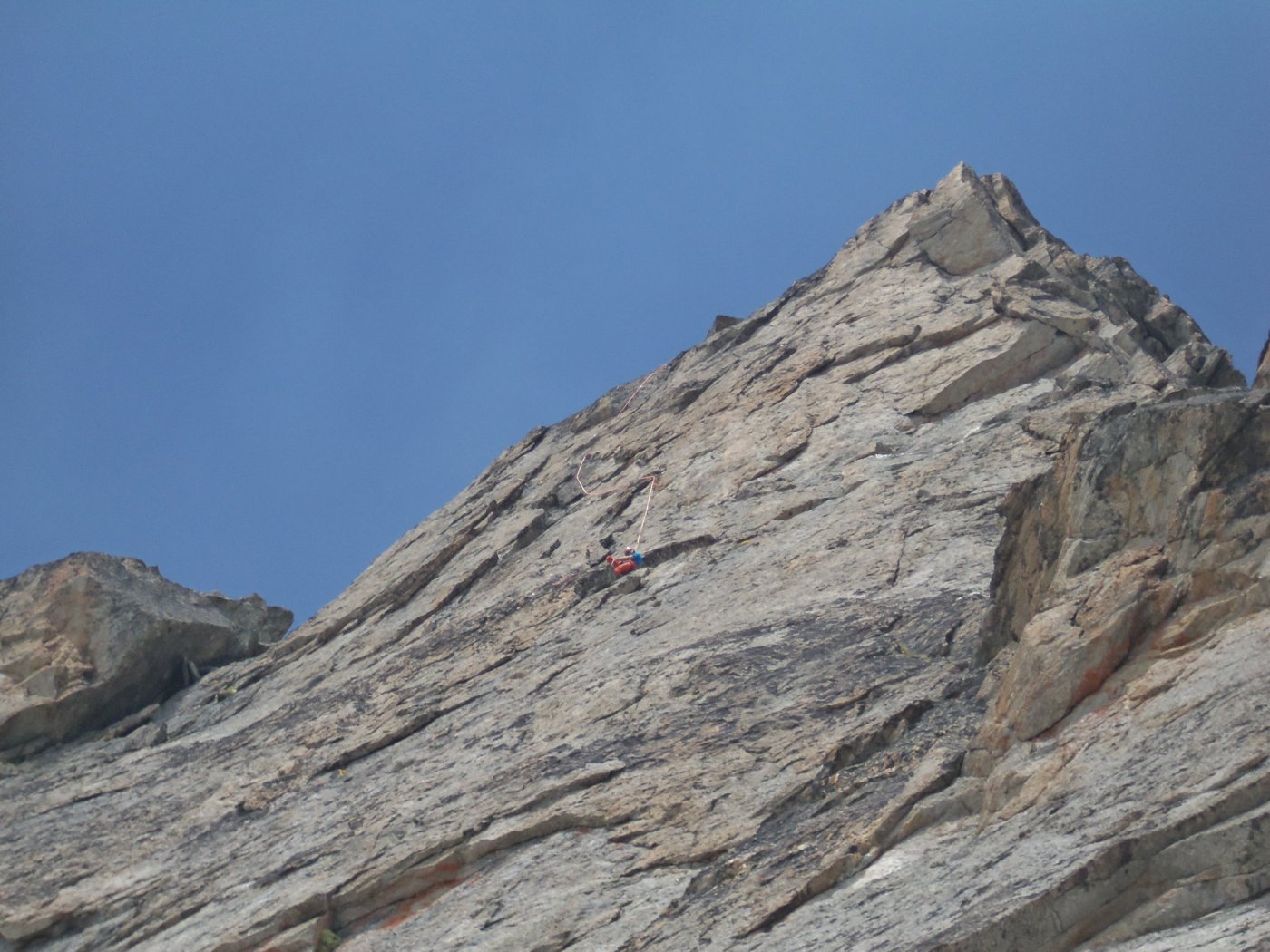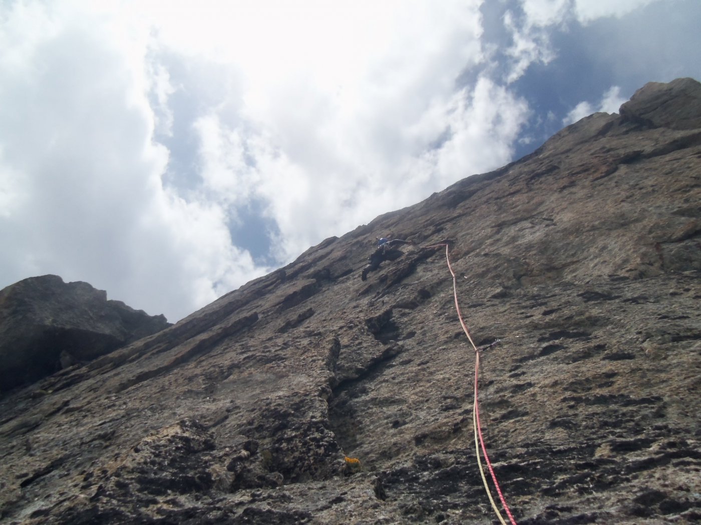 fatti 5 tiri da 60 m fino alla cengia, poi vista l'ora tarda (attaccato alle 12 e 30) abbiam buttato giù le doppie,…