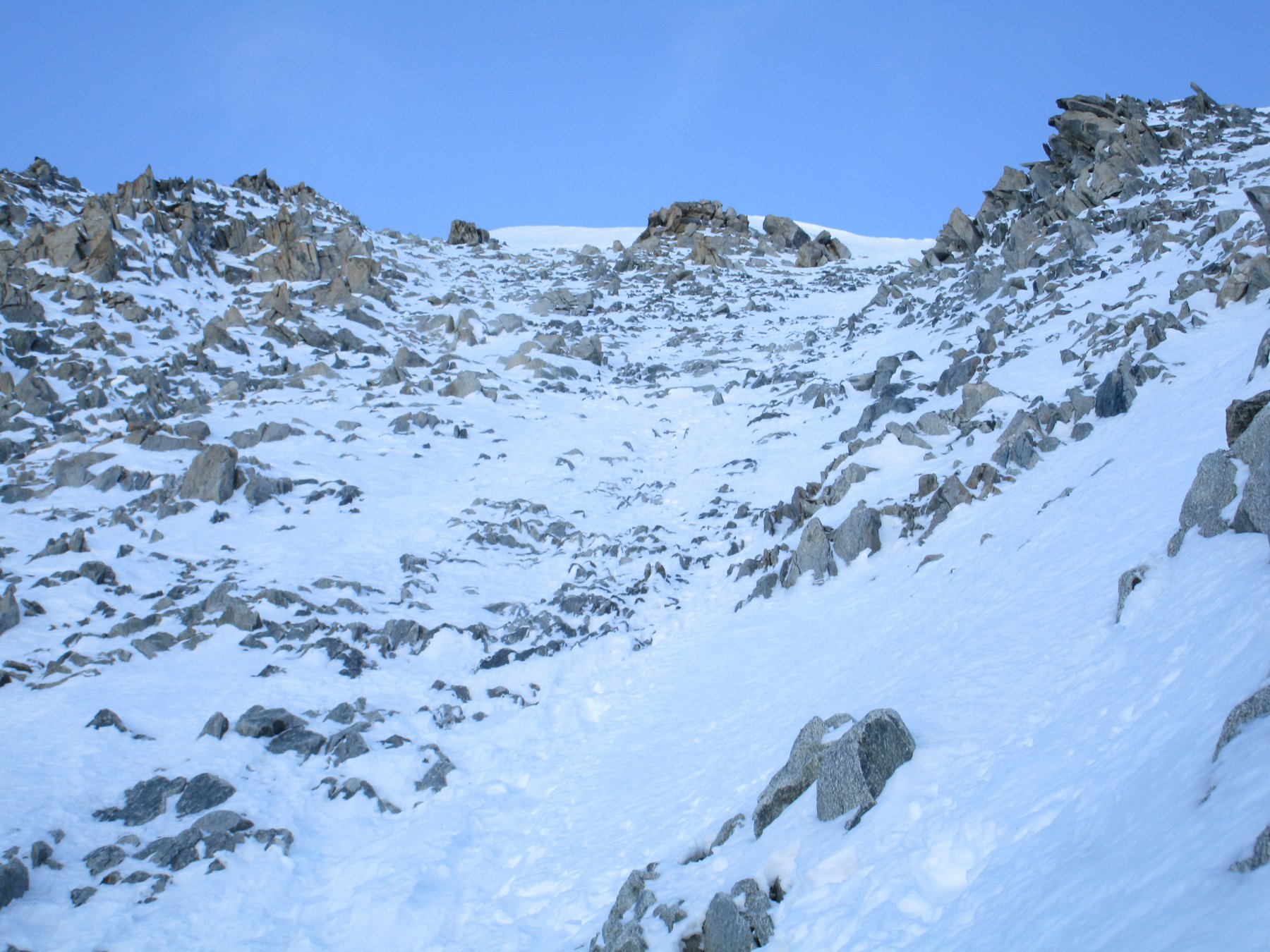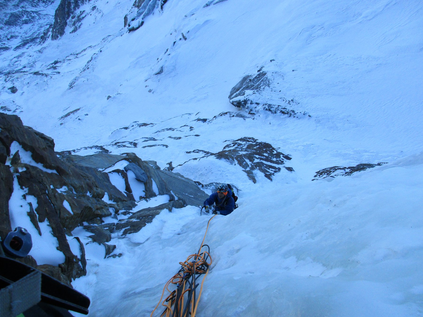 saliti a piedi da Argentiere, condizioni mediocri, terminale di circa 5 metri sugli 85° in neve polistirene si protegge solo in uscita…