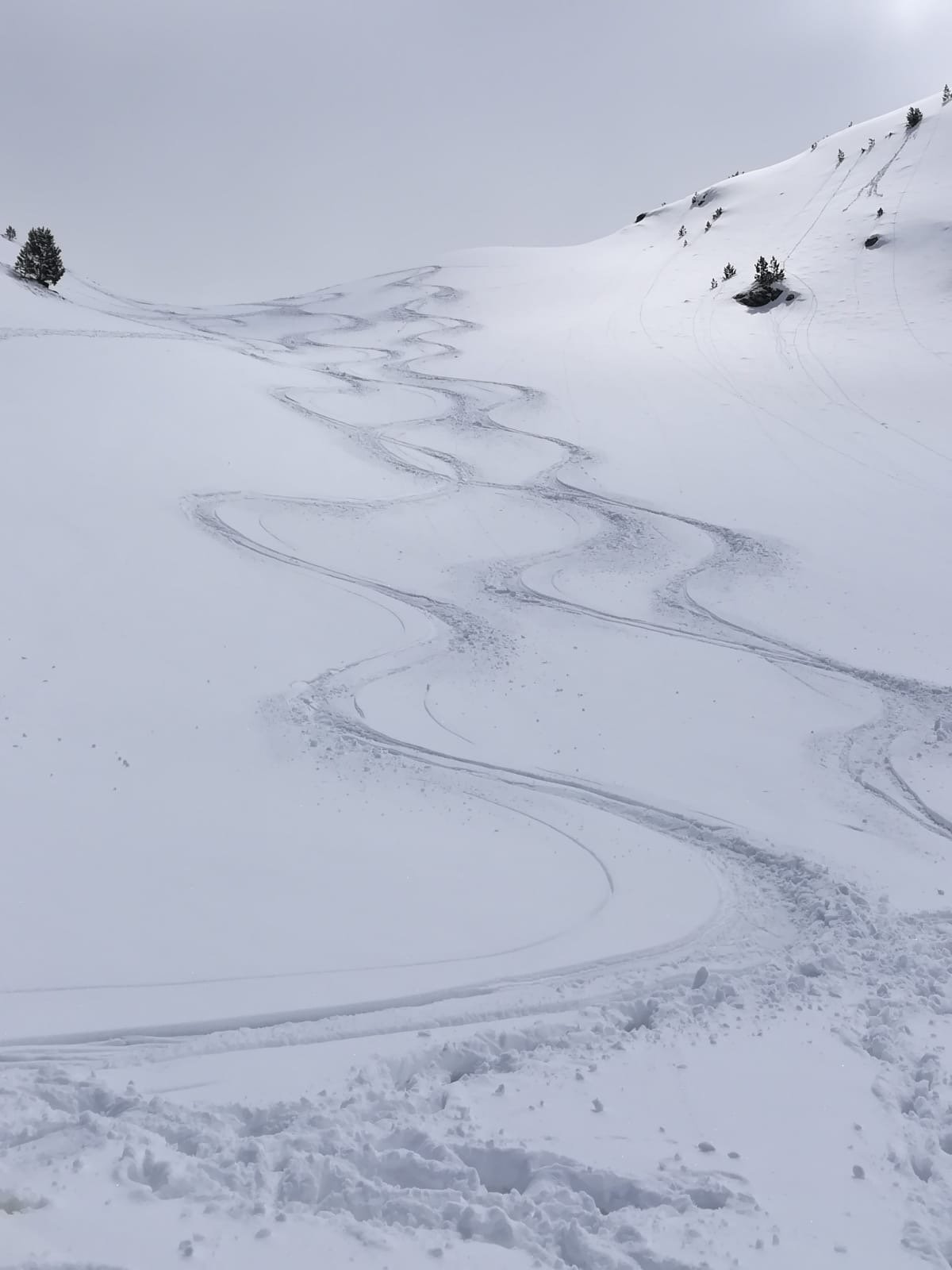 Mezz'ora con sci in spalle Poi un pò di gava e buta e finalmente neve! Nel canalone un pò molle poi dal primo colletto più…