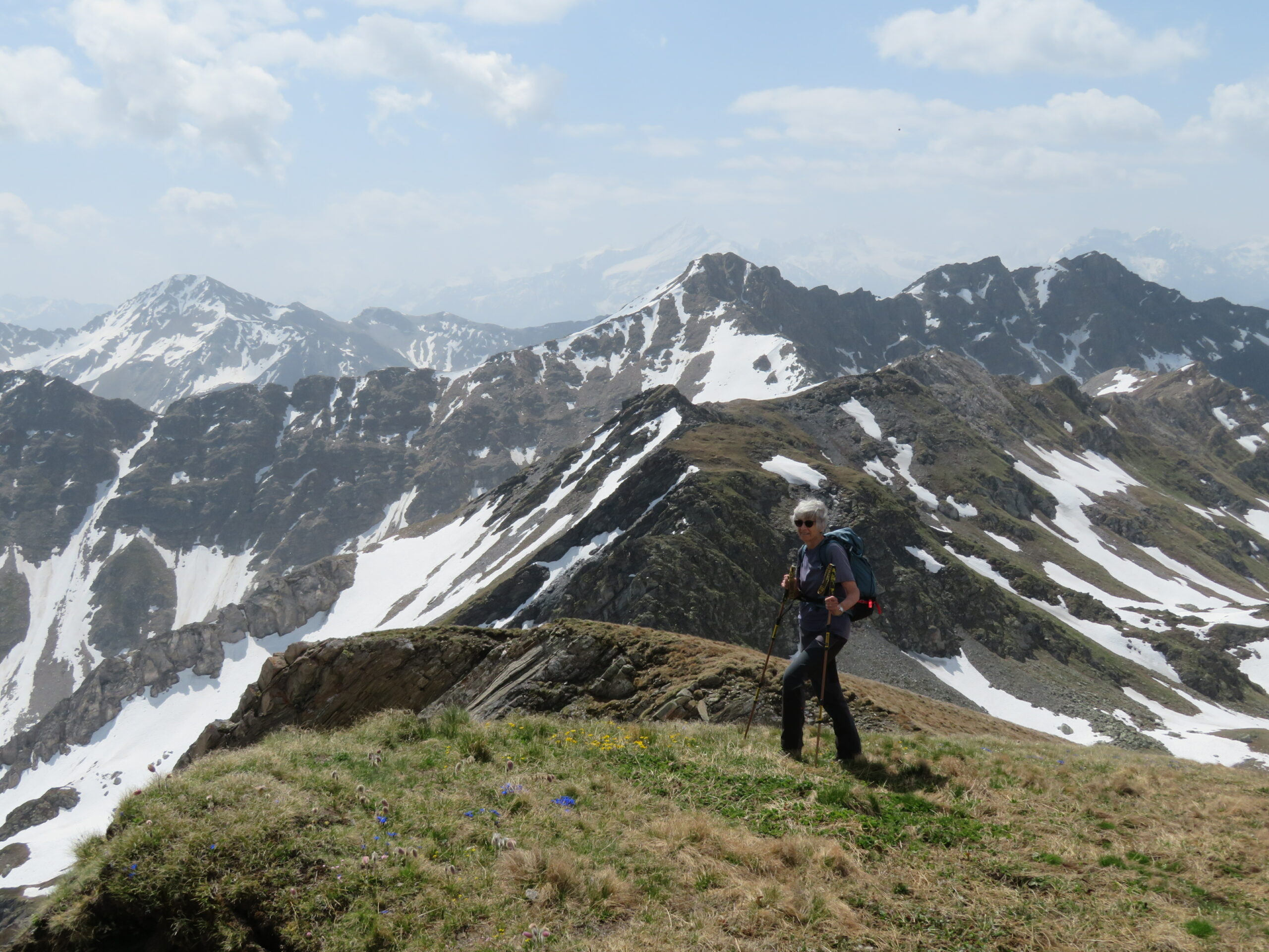 | albertsan | verso il laghetto, per prati fioriti | albertsan | ancora neve nei prati sotto la cima | albertsan | sotto la cima: sfondo Costa di serena, Testa di serena e dei Frà, M. Flassin | albertsan | quasi in cima | albertsan | vista su Grande Rochere e Aig. de Bonalé | albertsan | La cima dal laghetto. Rispetto alla foto, siamo saliti più a destra