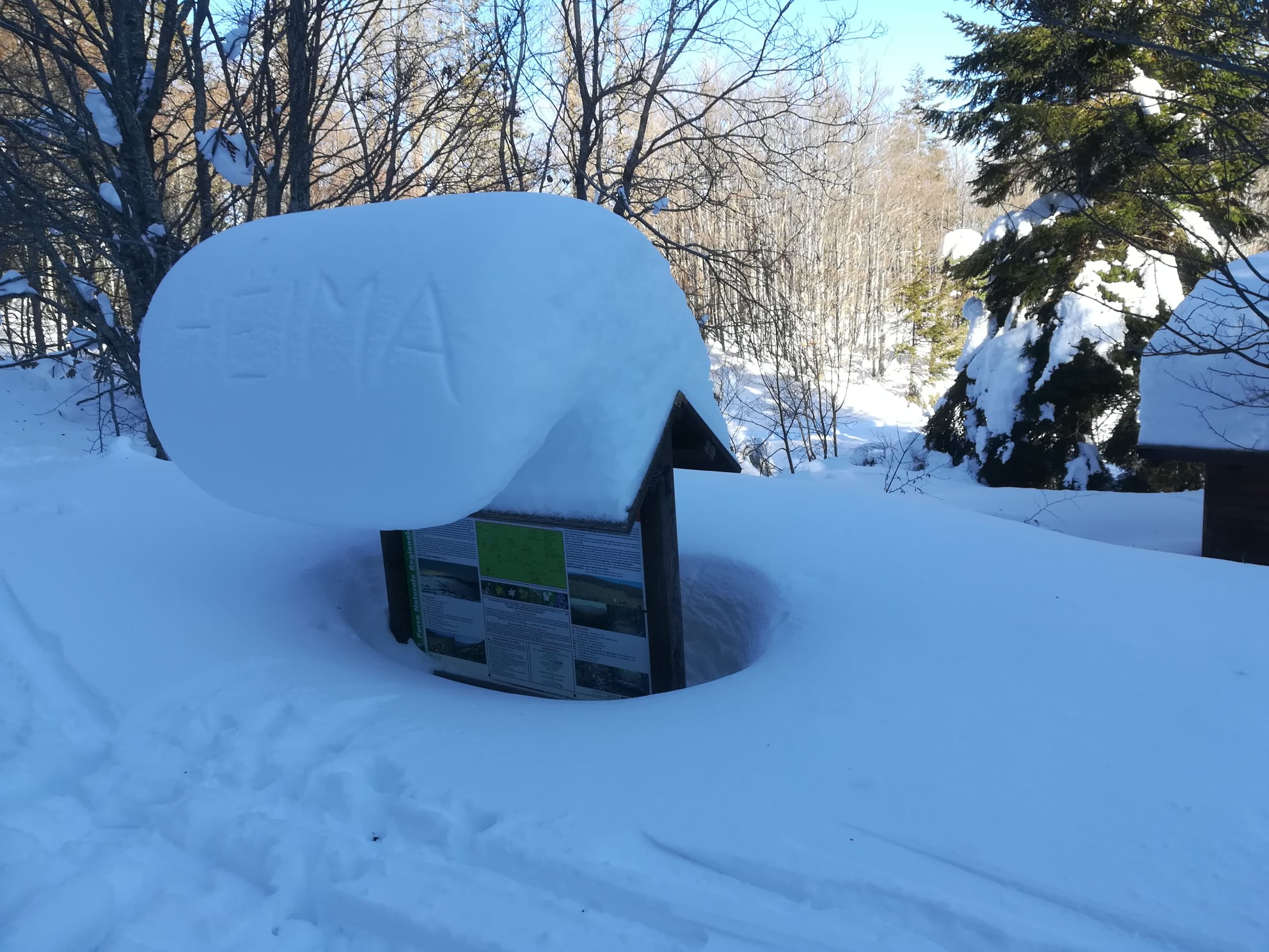 | albev | L'innevamento straordinario al Riparo Moglia Negretta in corrispondenza del bivio per il passo della spingarda | albev | In rosso le line di salita in verde discesa | albev | appenatolti gli sci | albev | salendo il canale sotto la cima Nord | albev | All'uscita del canale | albev | Sul plateau sommitale