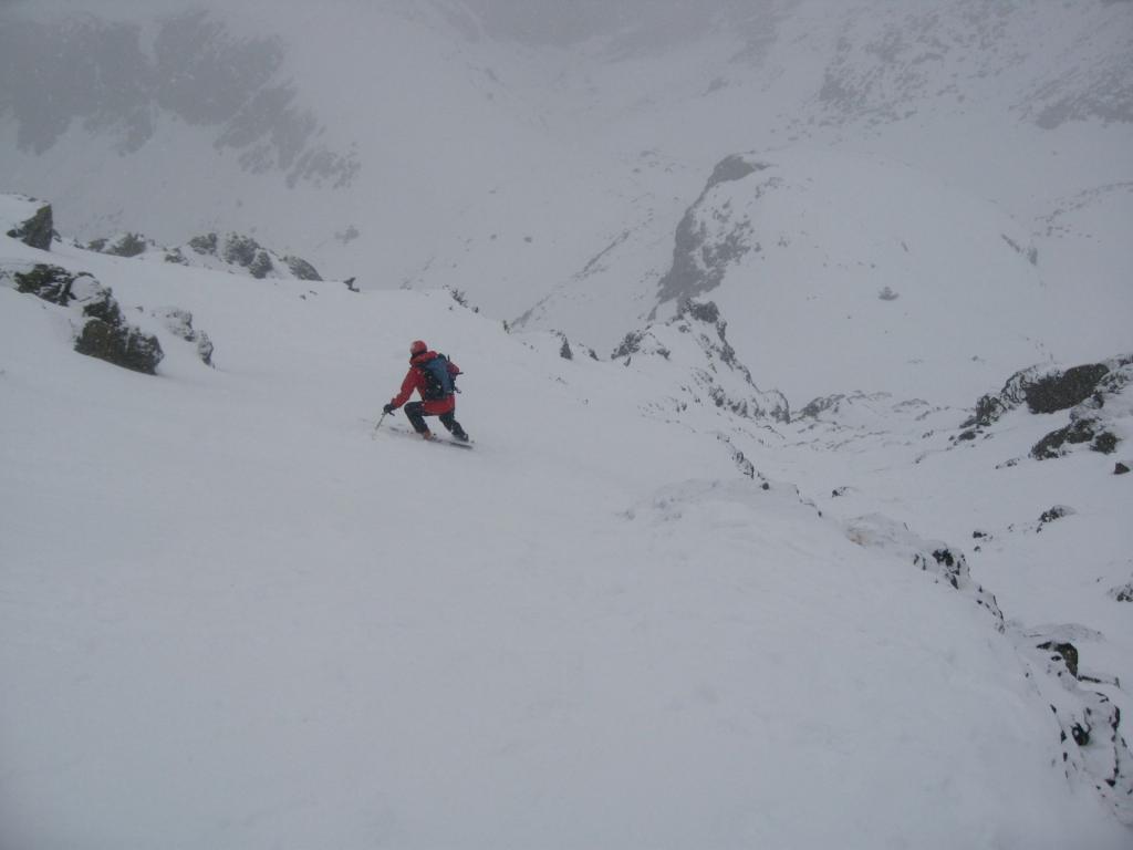 | alce | il canale e l'itinerario da noi seguito | alce | il canale in prossimità del colletto finale | alce | in discesa nel tratto superiore del canale | alce | ancora bella neve all'uscita