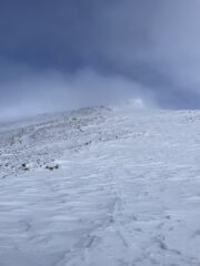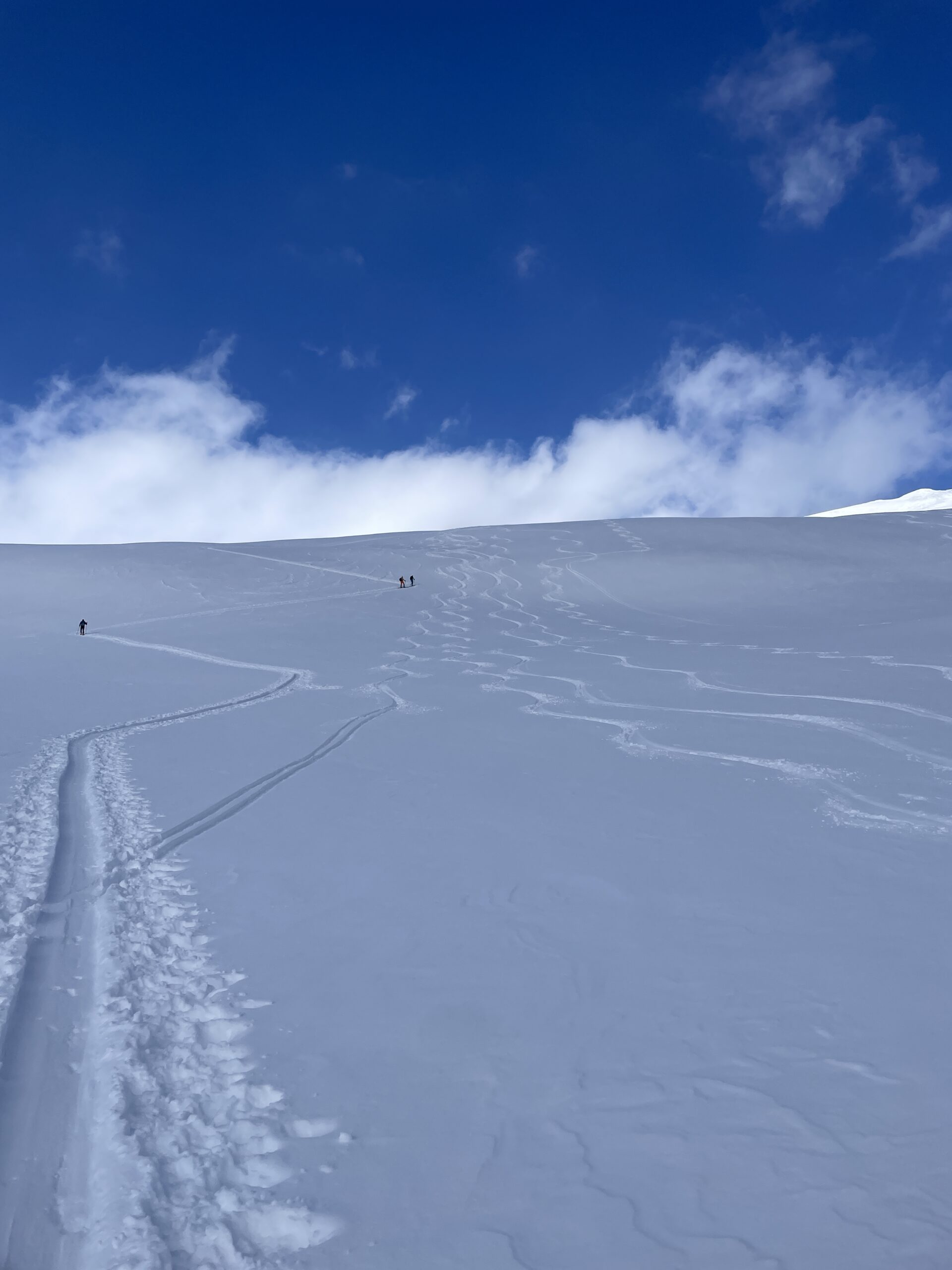 Neve poca, accumulata nei canali e in vetta pari a zero. La neve risulta già pesante viste le temperature alte per il periodo. Siamo arrivati…