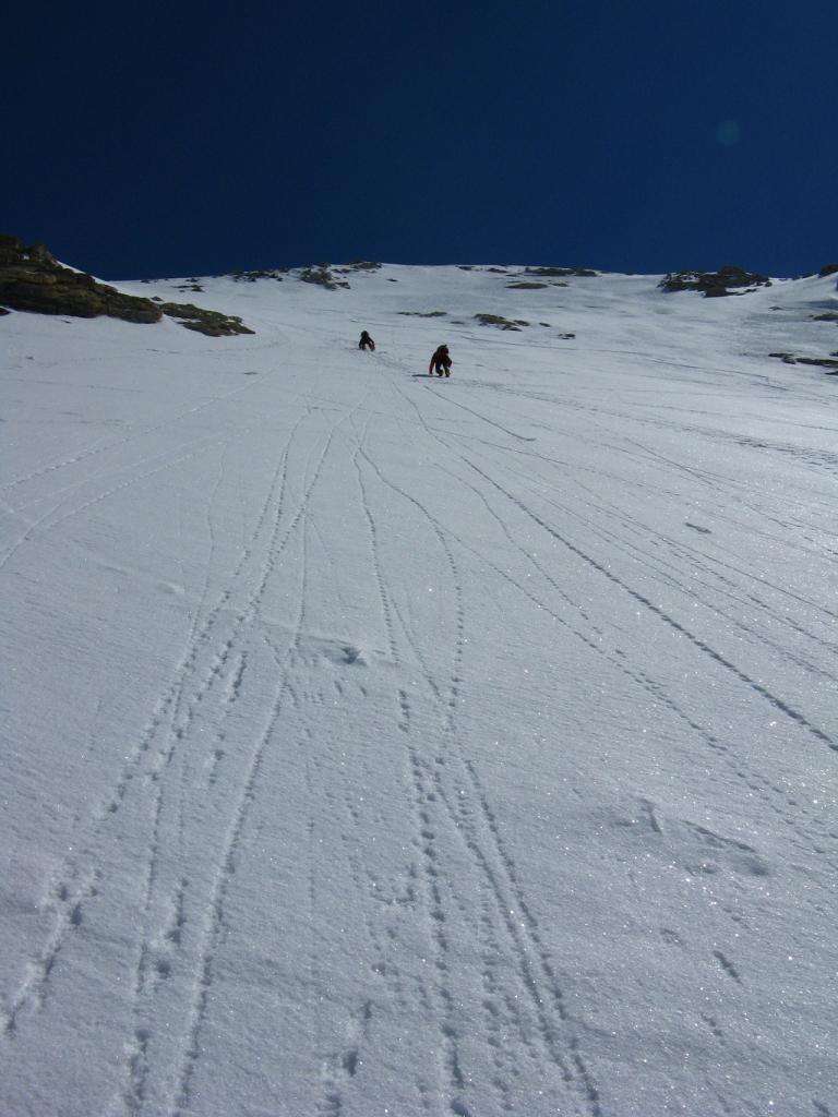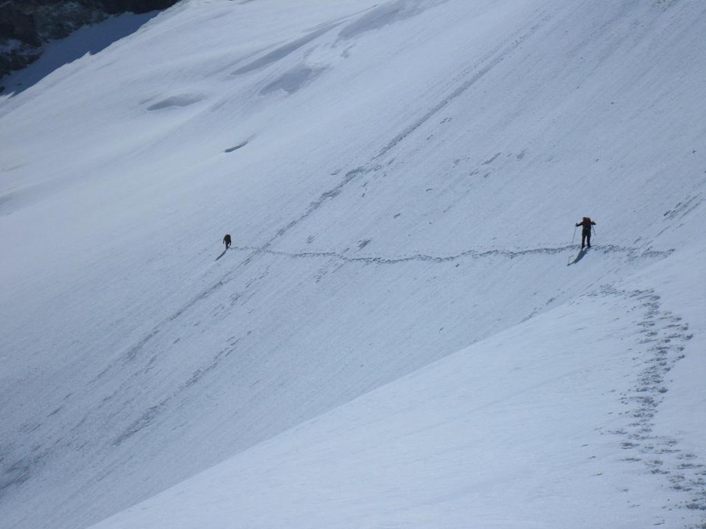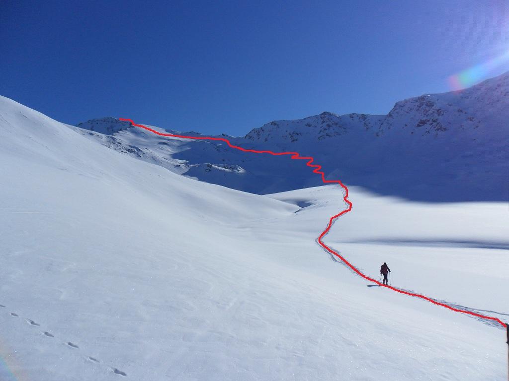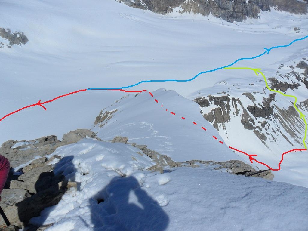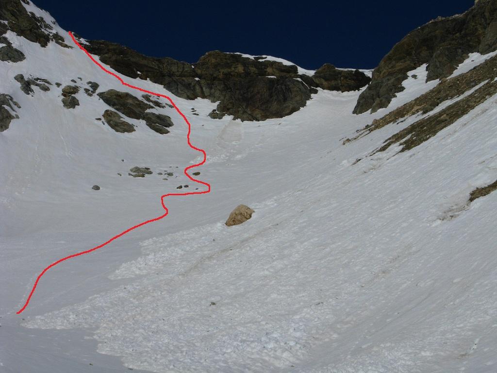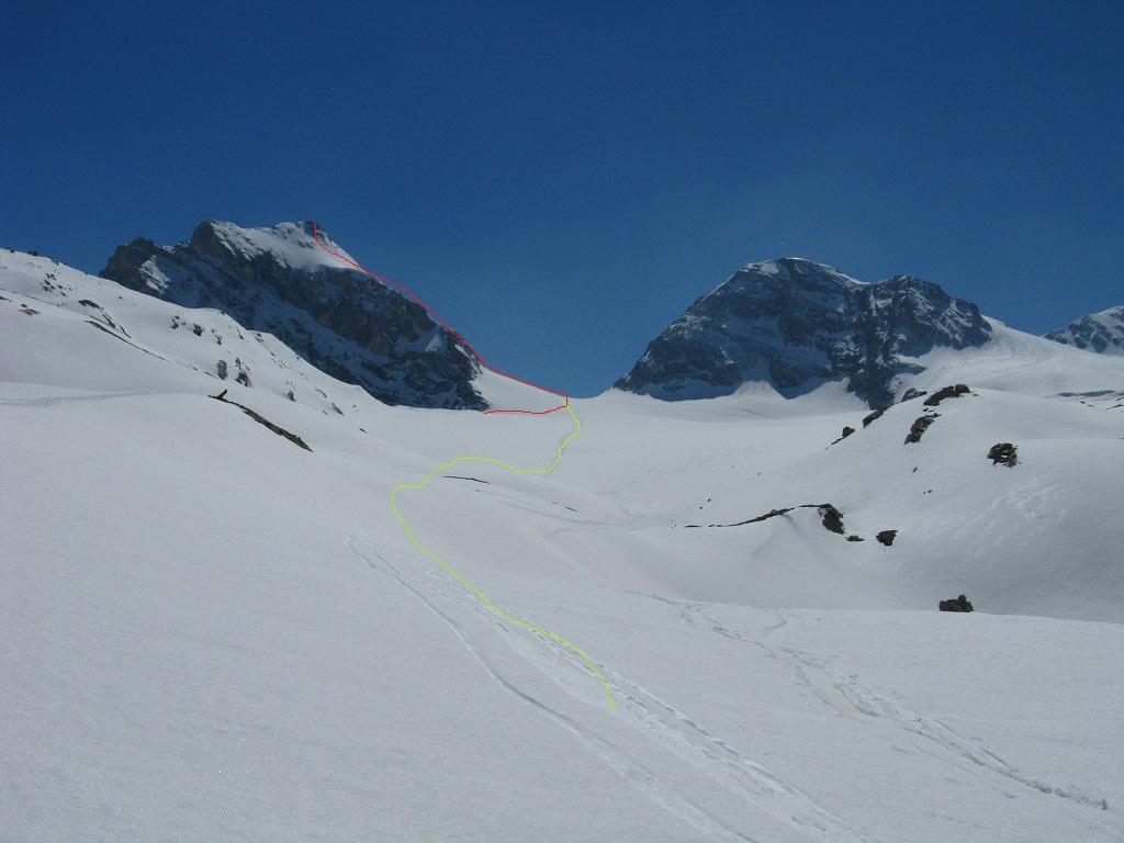 | ale-dan73 | percorso dalll'uscita del pendio al colle | ale-dan73 | parte mediana del pendio la piu' ripida | ale-dan73 | uscita sulla sella prima dell'ultimo tratto | ale-dan73 | il ripido pendio che porta sul ghiacciao | ale-dan73 | il valloncello a S che porta al pendio | ale-dan73 | il roc du fond visto dal imbocco del vallone | ale-dan73 | la vetta | ale-dan73 | in rosso la salita in verde una variante in blu la discesa | ale-dan73 | salita dal colle | ale-dan73 | | ale-dan73 | affolamento in cima | ale-dan73 | verso il colle | ale-dan73 | il vallone di salita | ale-dan73 | panorani | ale-dan73 | il fourchon oggi