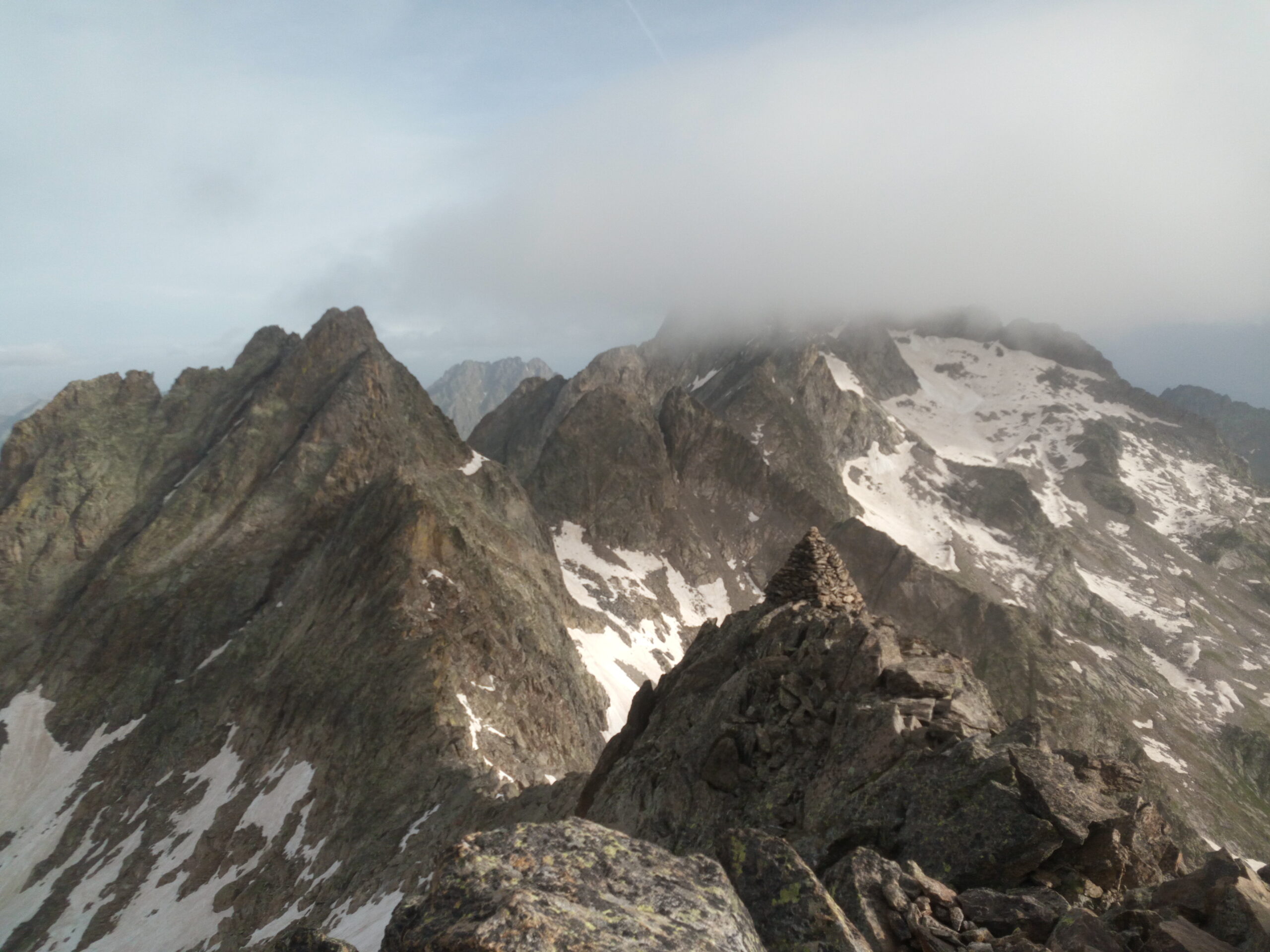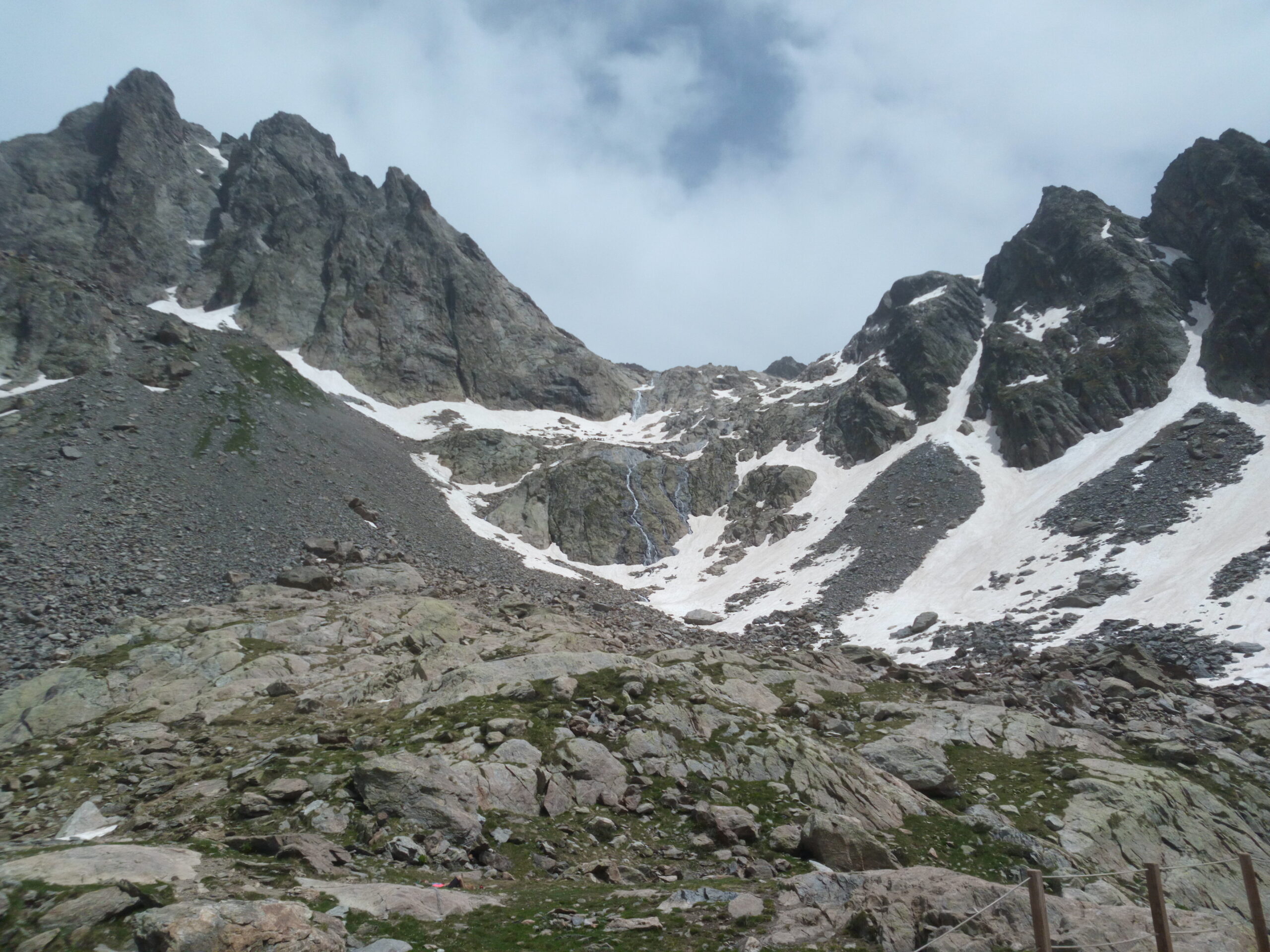 Usati ramponi dopo il primo pendio di sfasciumi sopra il Remondino. Dal colle della Culatta tutto pulito.