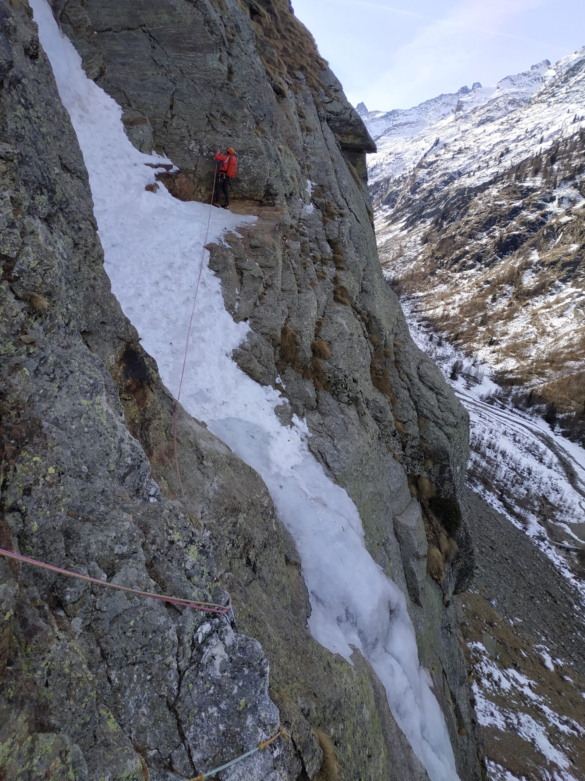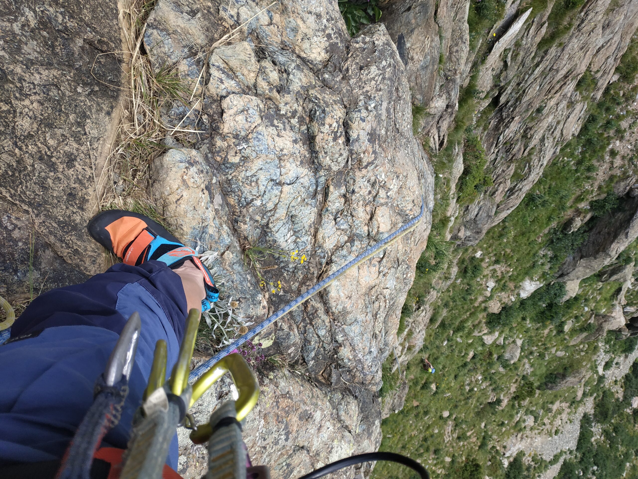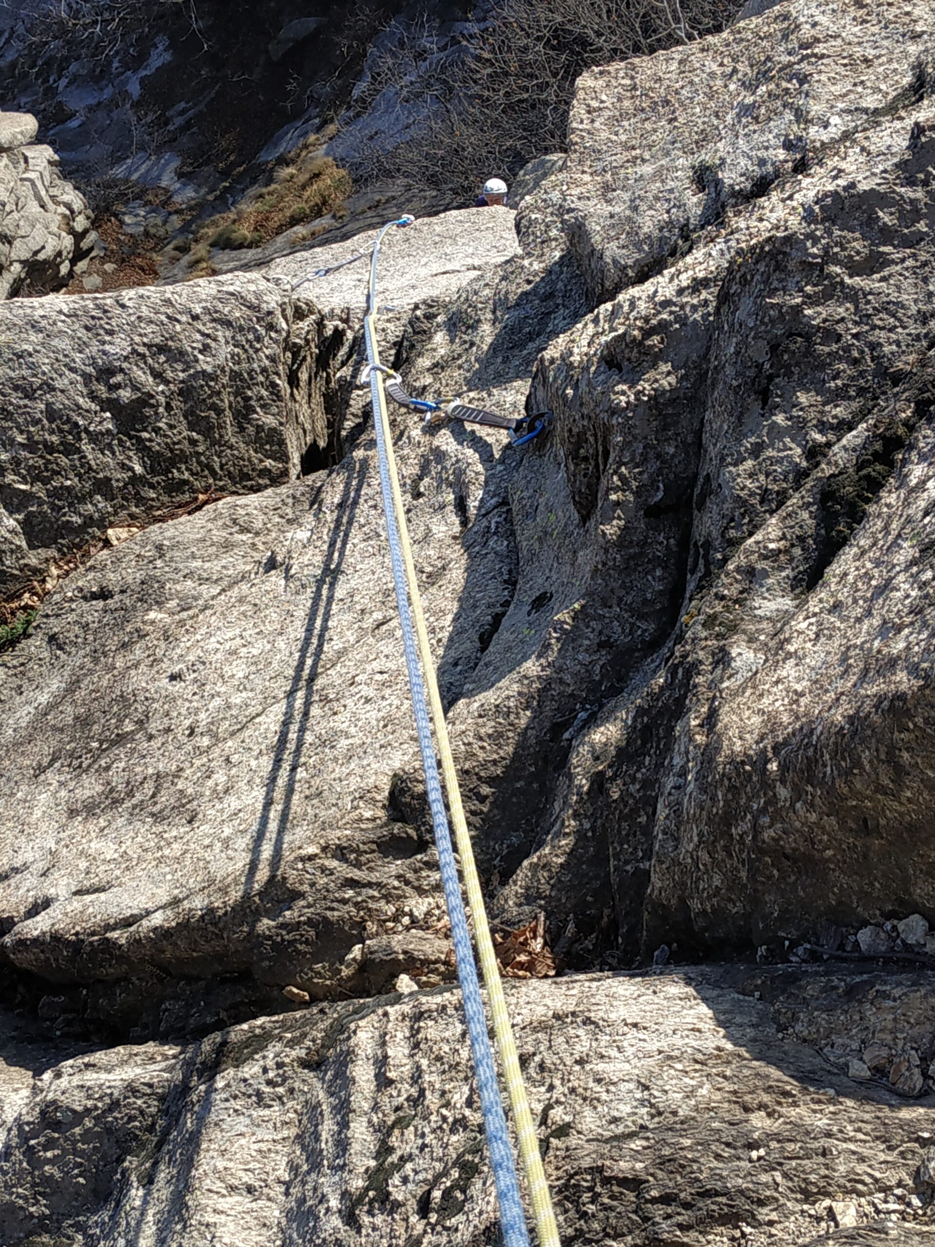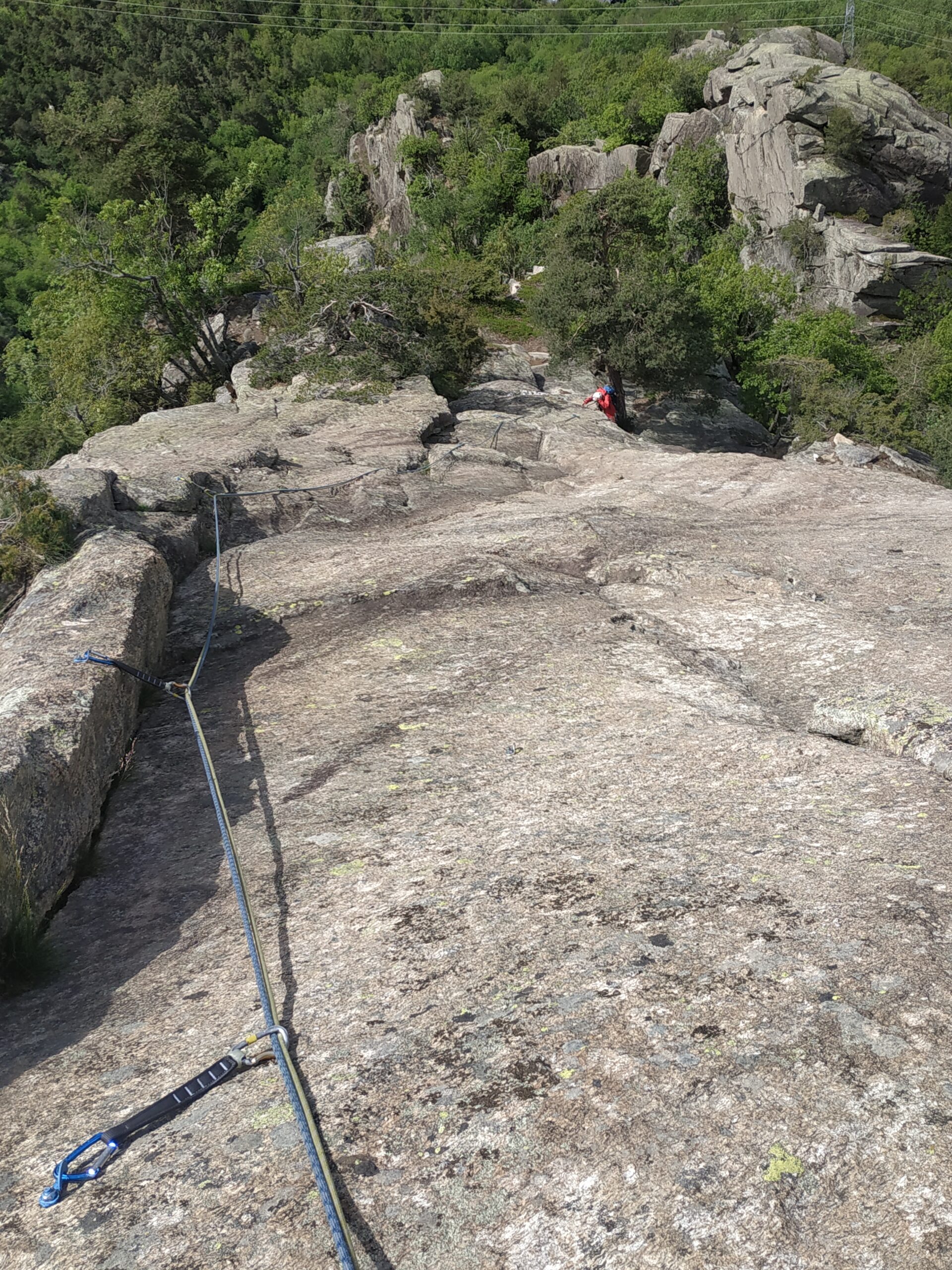| alf | il traverso per raggiungere la sosta del primo tiro. | alf | la colonna del secondo tiro | alf | il quarto tiro, meritevole. | alf | uscita dal quinto e ultimo tiro.