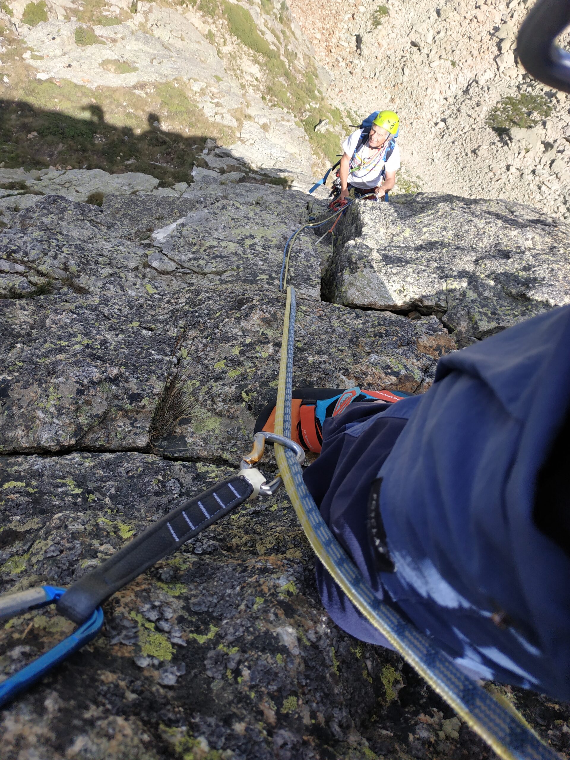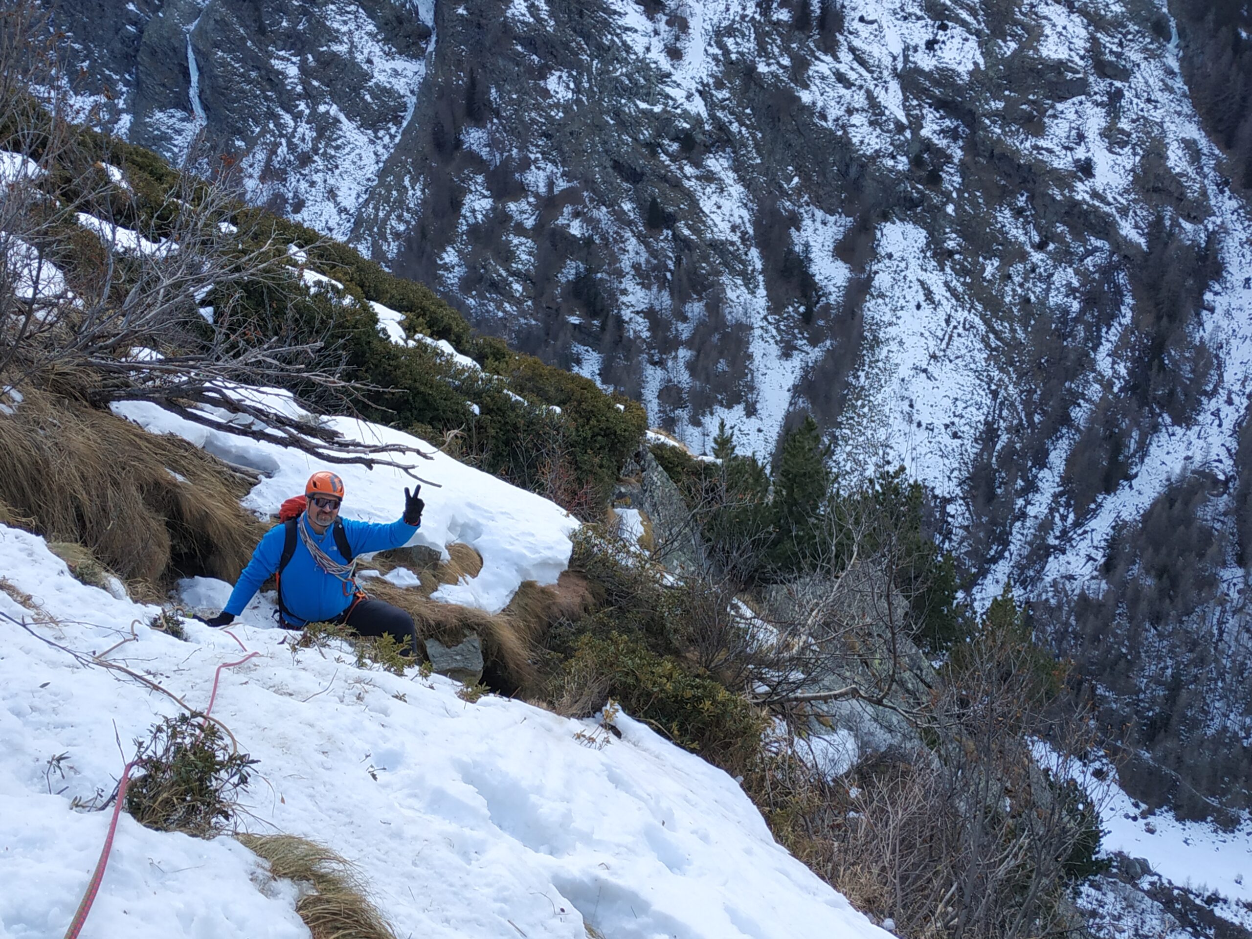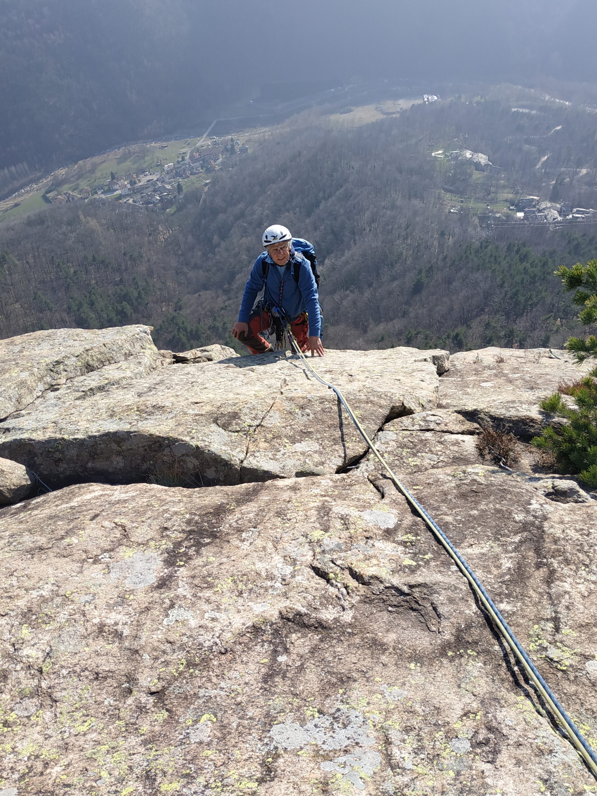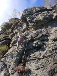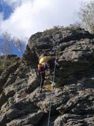 | alf | il traverso per raggiungere la sosta del primo tiro. | alf | la colonna del secondo tiro | alf | il quarto tiro, meritevole. | alf | uscita dal quinto e ultimo tiro.