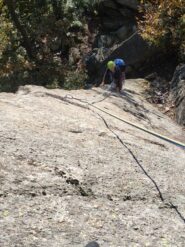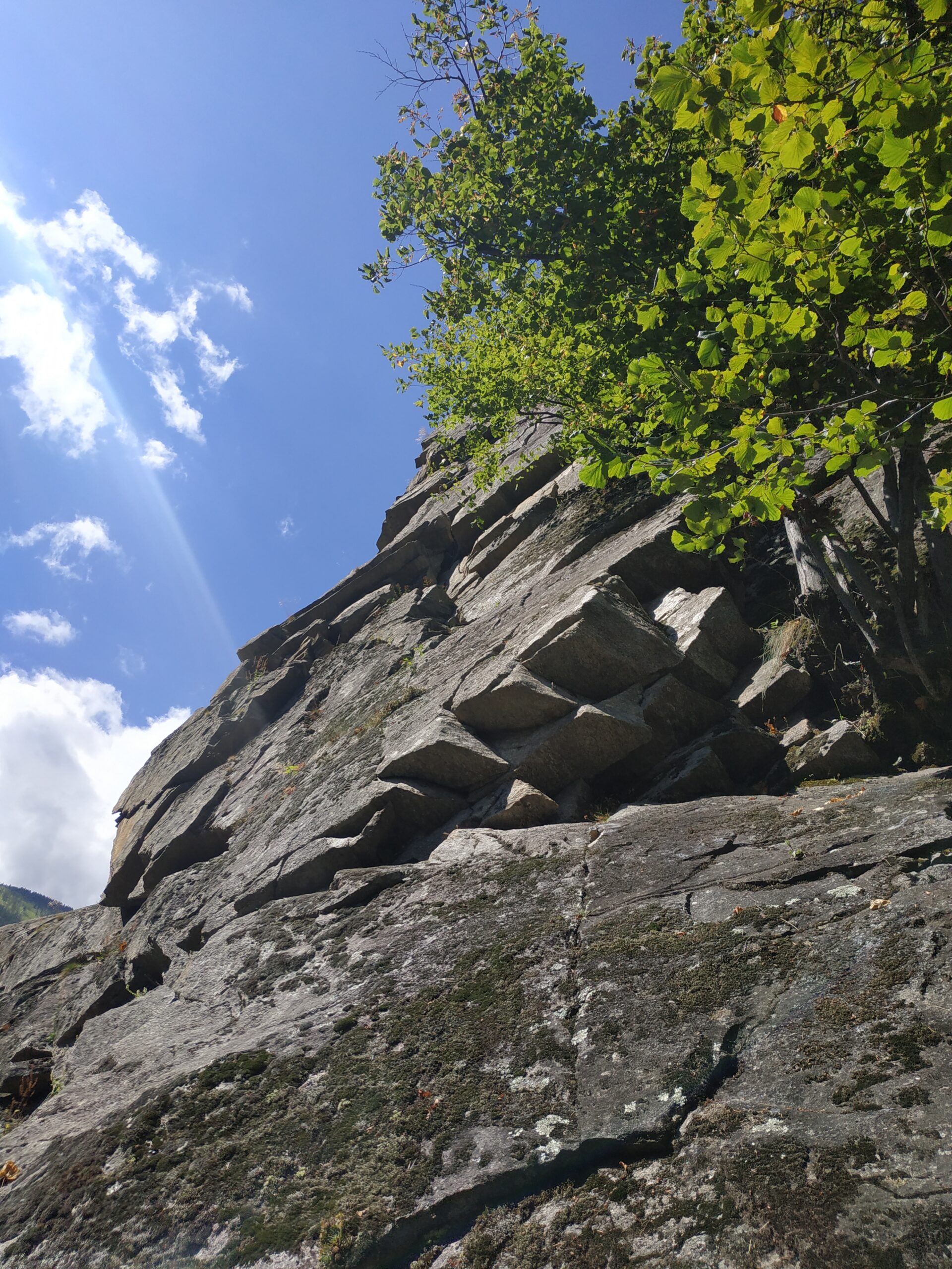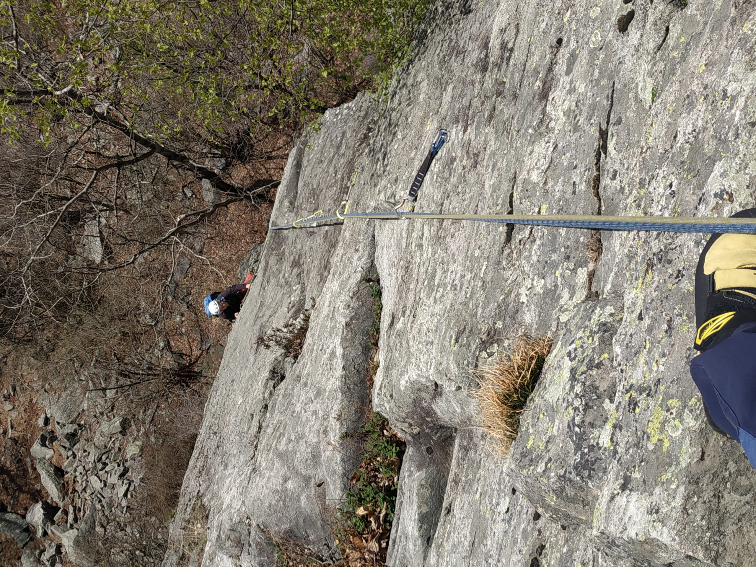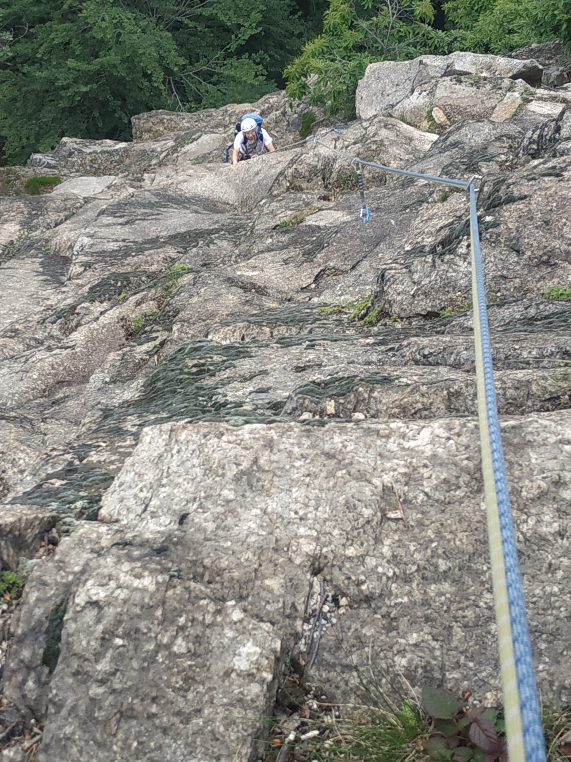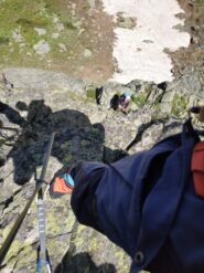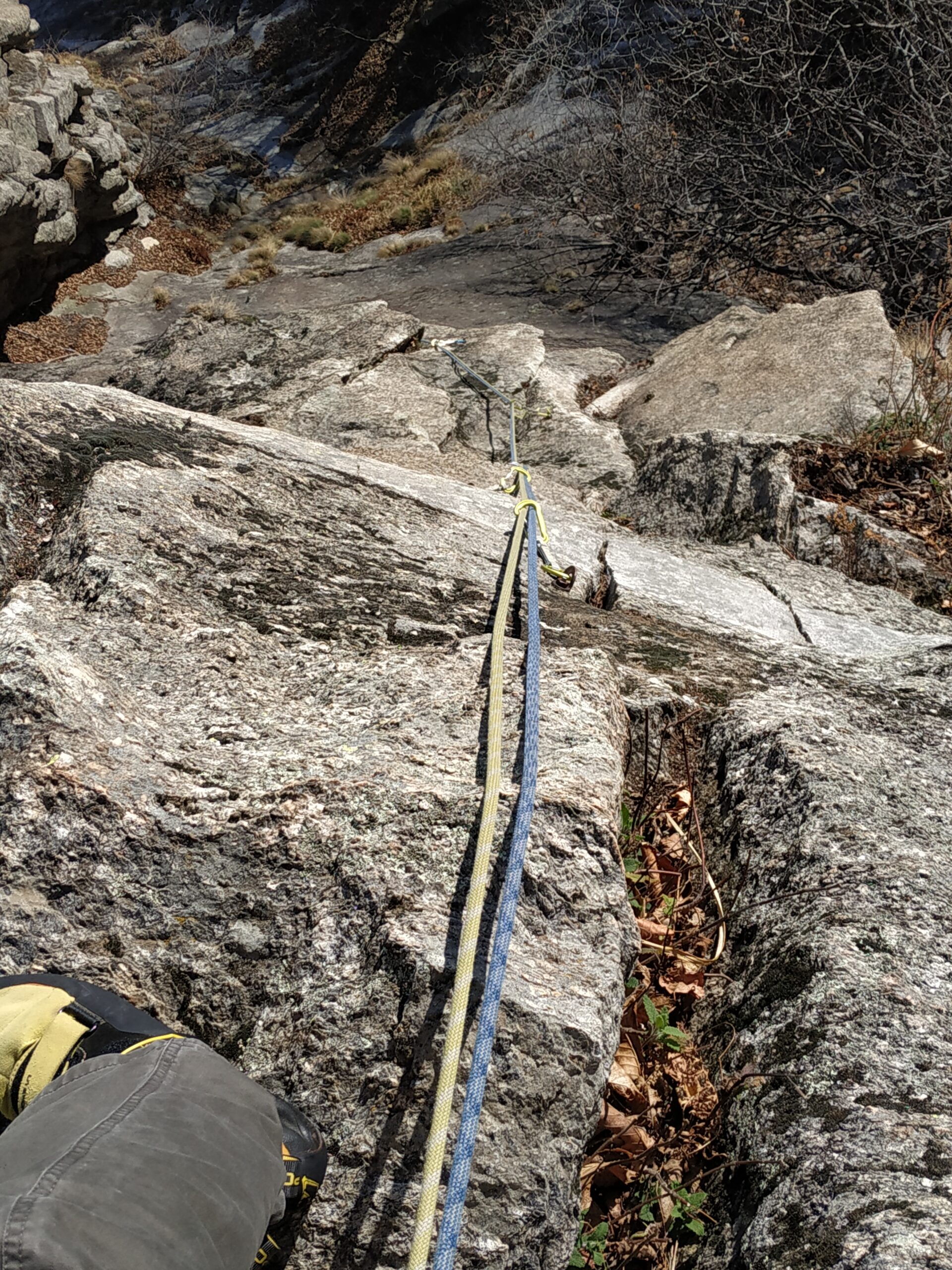 | alf | il traverso per raggiungere la sosta del primo tiro. | alf | la colonna del secondo tiro | alf | il quarto tiro, meritevole. | alf | uscita dal quinto e ultimo tiro.