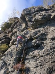 | alf | Giorgio sulle placche del primo torrione | alf | sul secondo torrione, via Michelin-Battù, Giorgio in azione | alf | verso la fine della via, bei passi (atletici) | alf | in cima. Giorgio è soddisfatto.