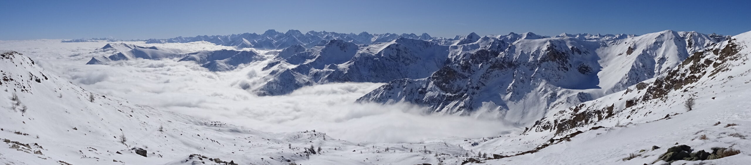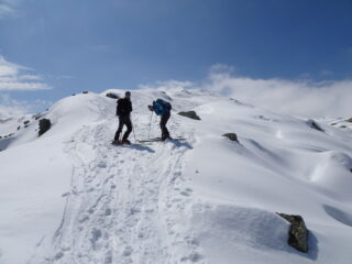 Partiti alle 9 neve marcia ma traccia ben portante, passati per Pian Croesio e risaliti per la dorsale.