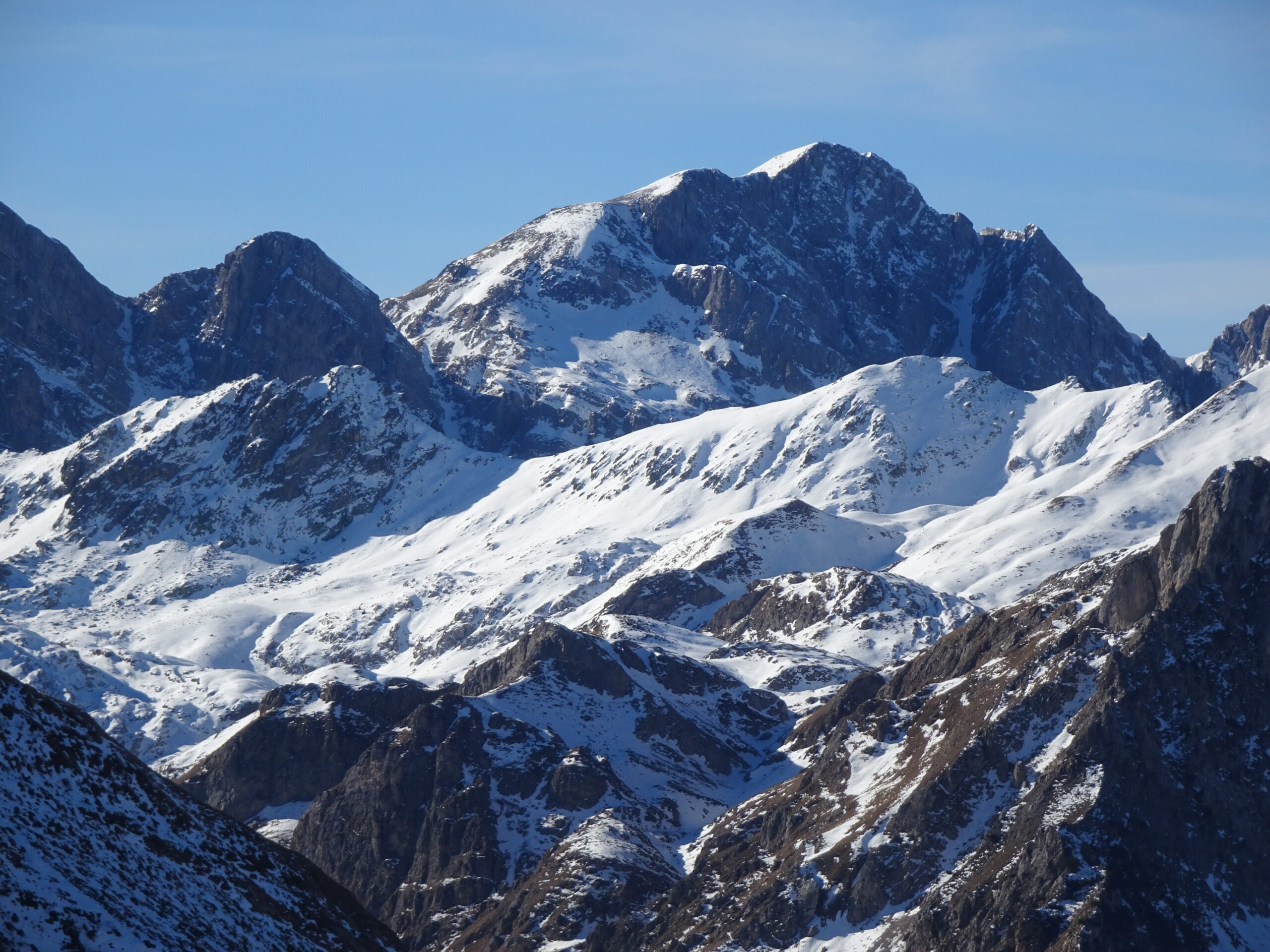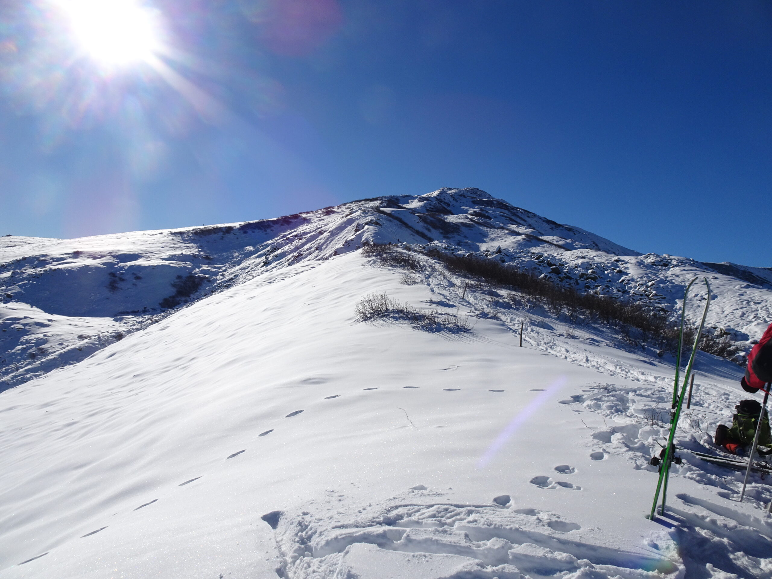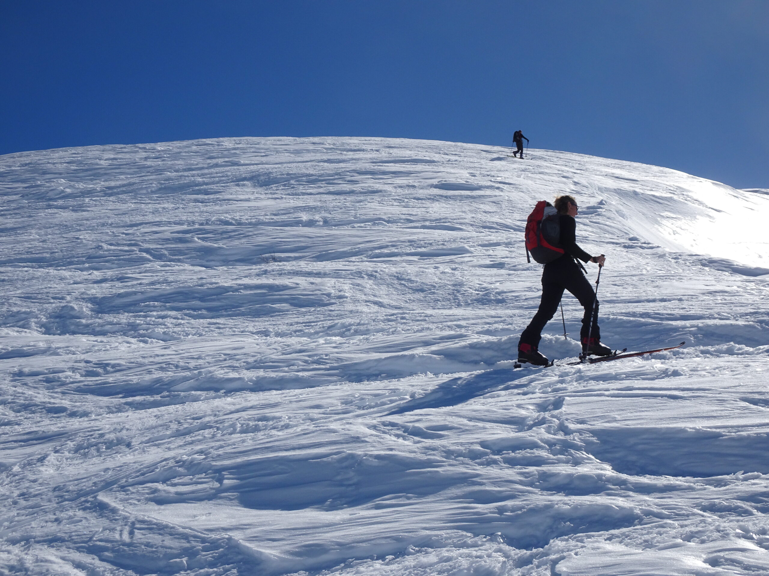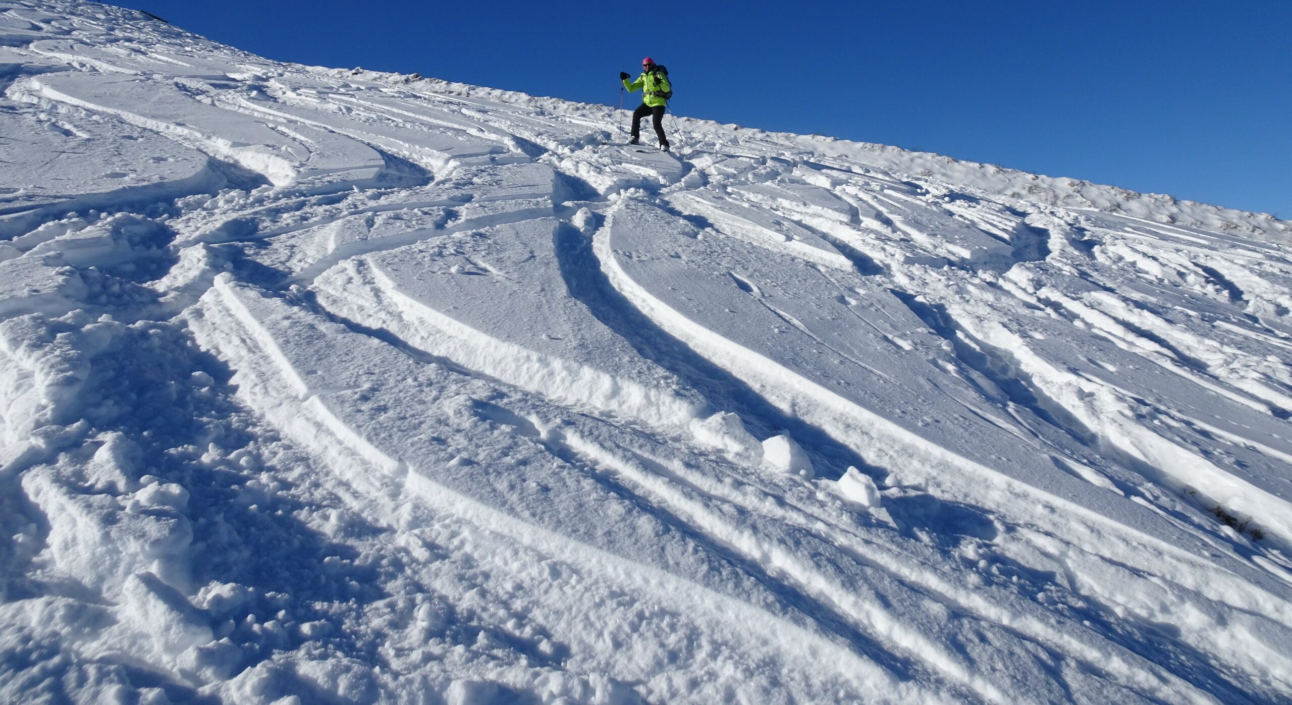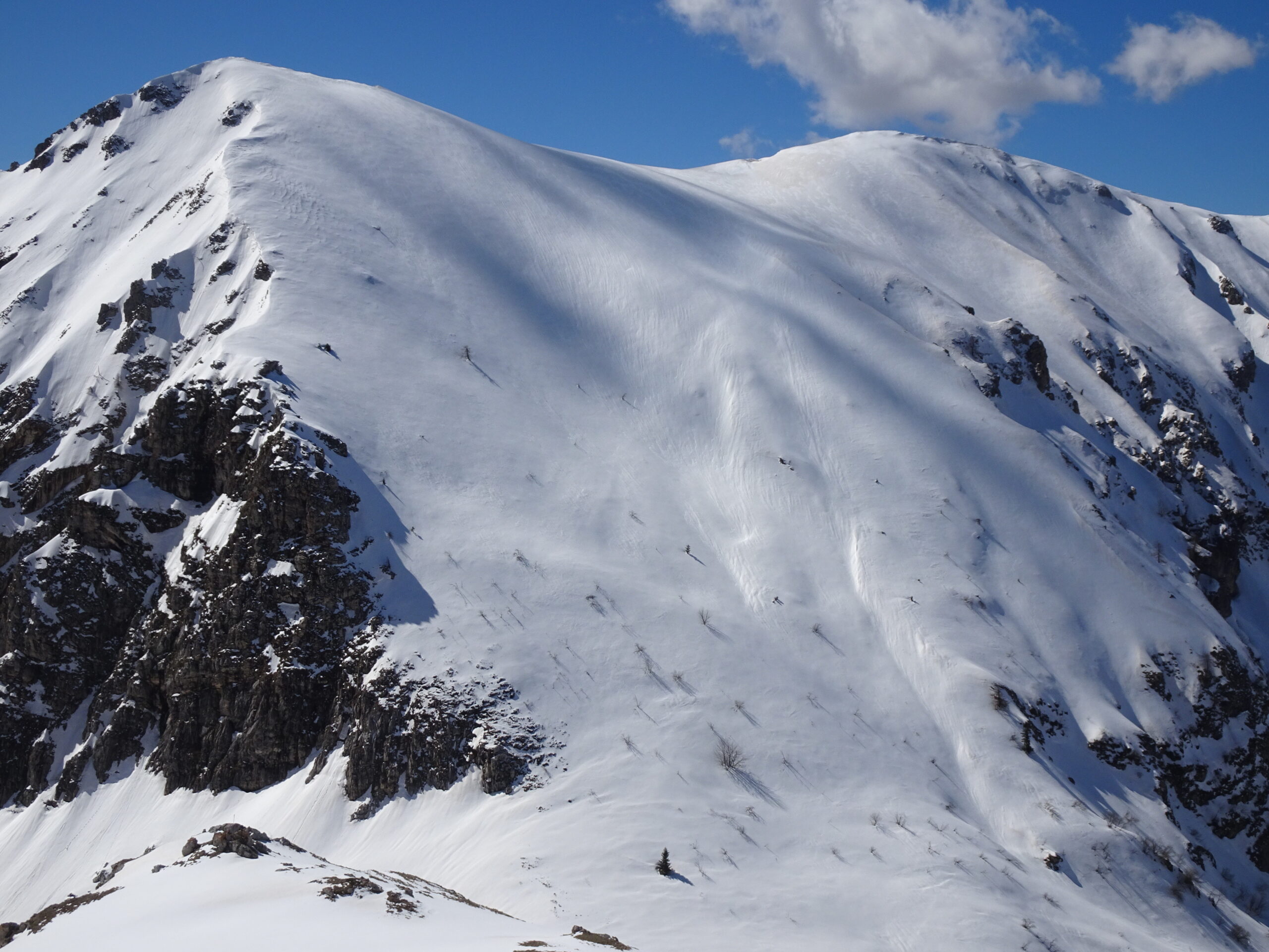 La parte inferiore della gita è un pò lavorata dai passaggi, oltre la boschina nessun problema fino in vetta.