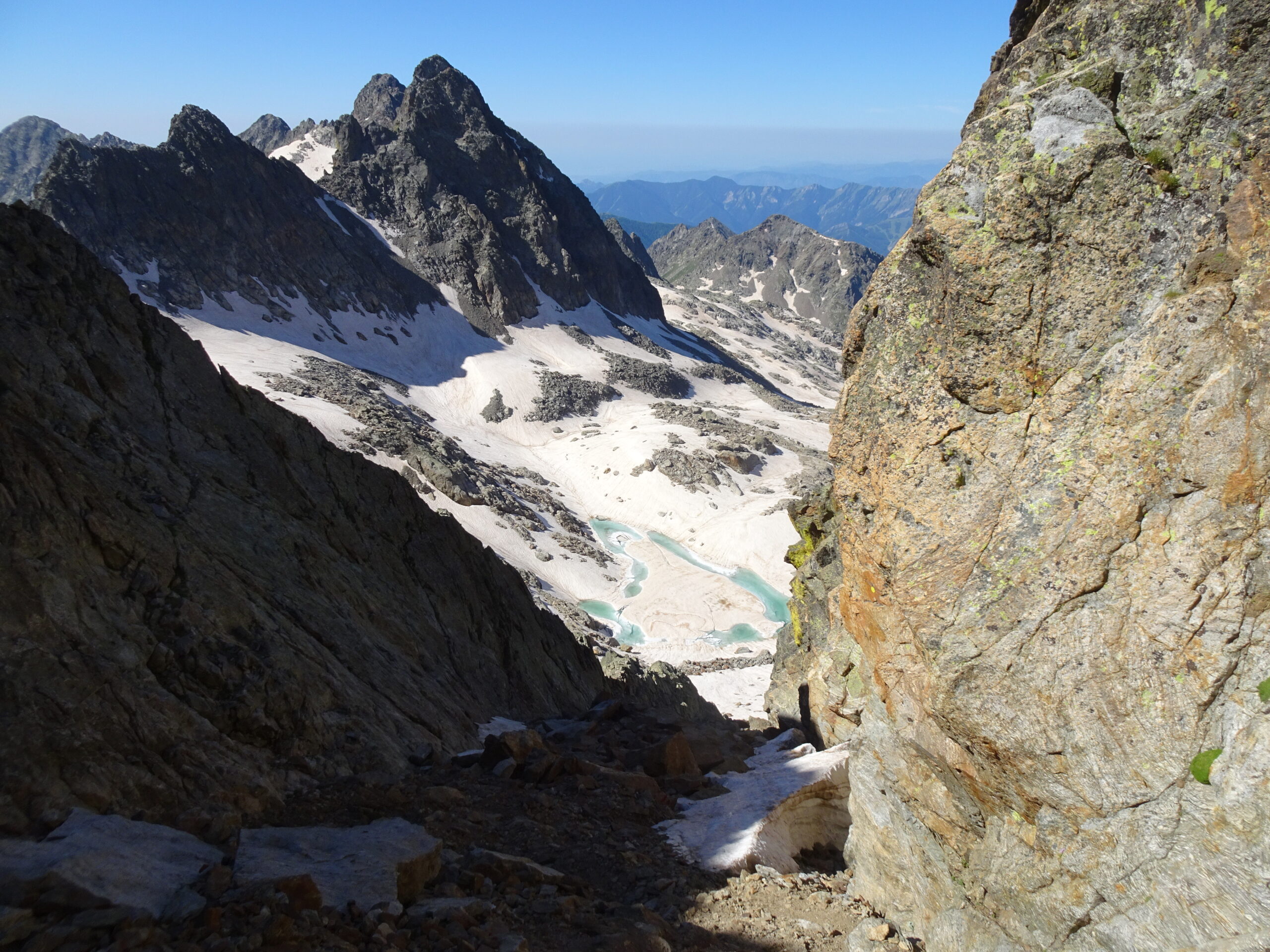 saliti direttamente da pian del Re, tutto in ordine,nevaio dal Coulour attraversabile senza problemi e senza ramponcini, tutte le catene libere,consigliato caschetto per piccole pietre…
