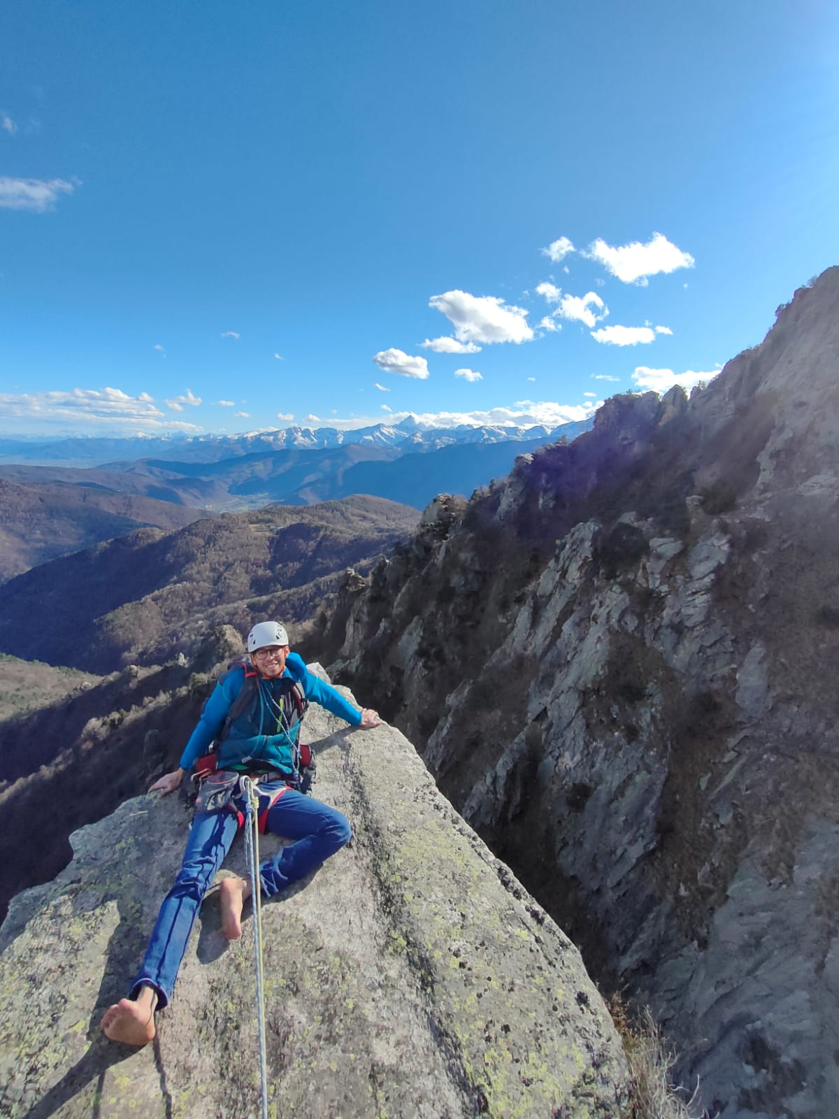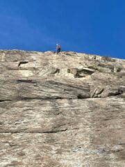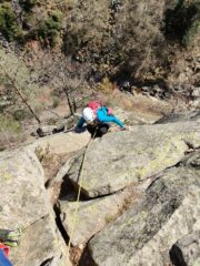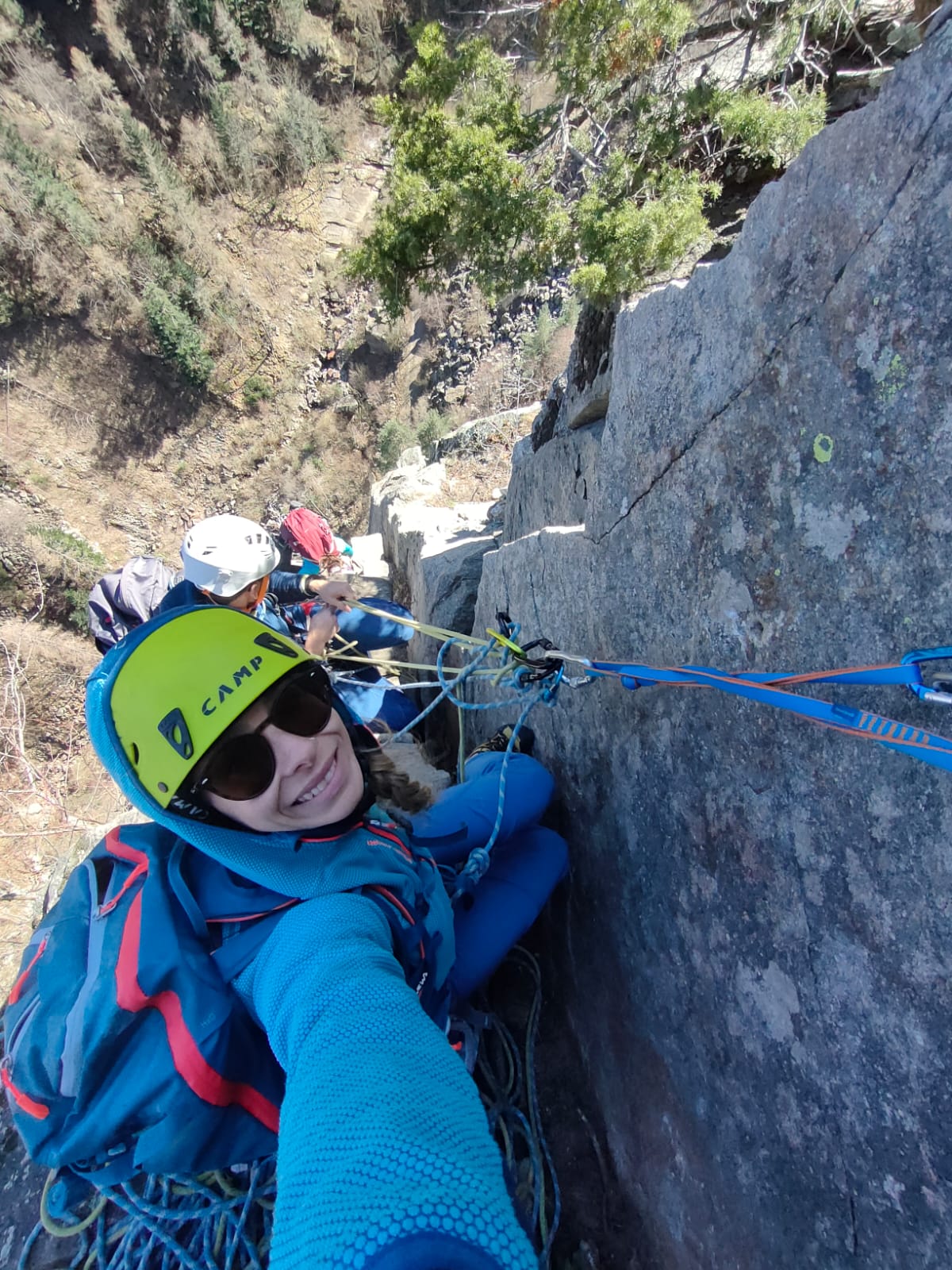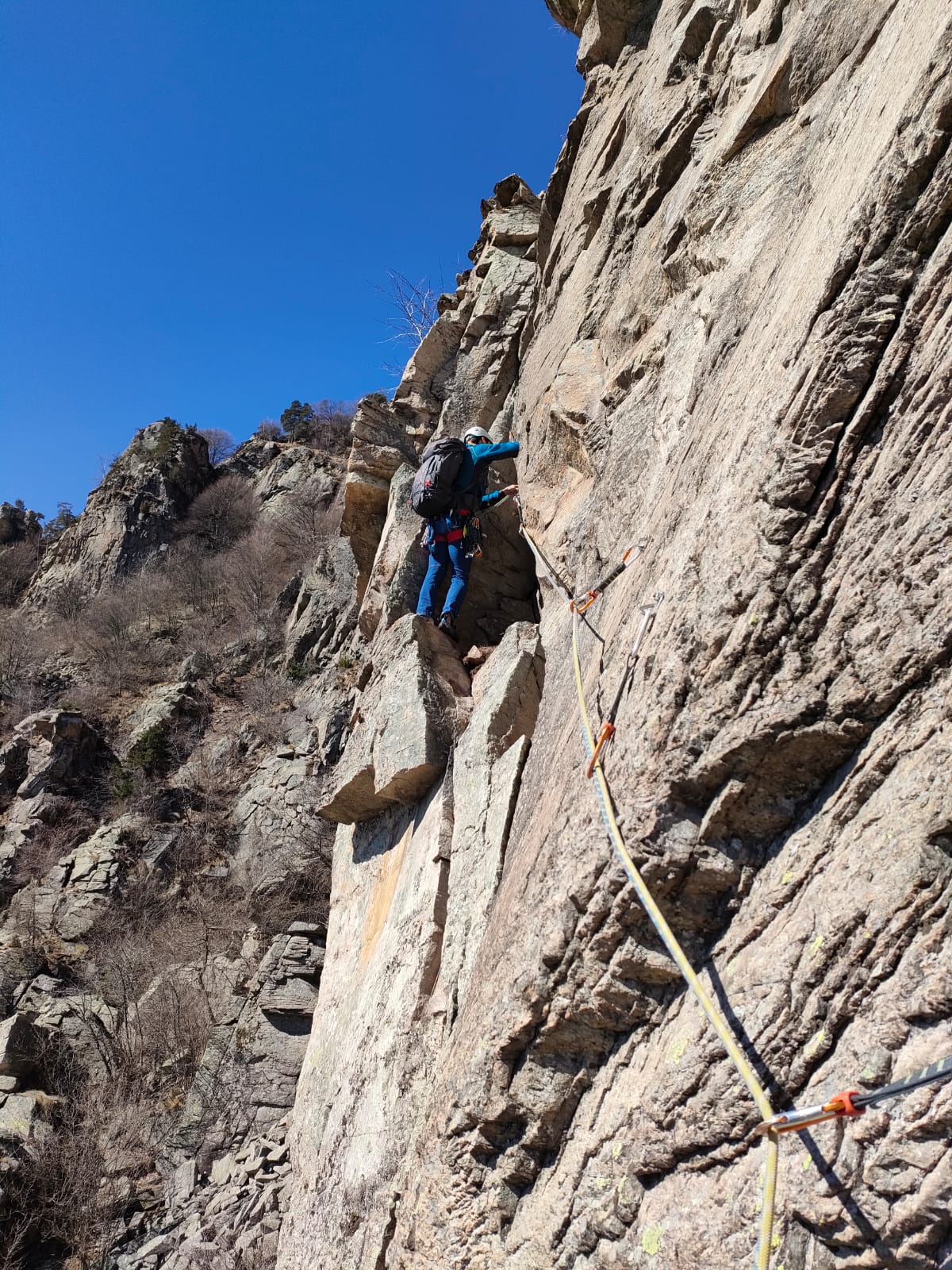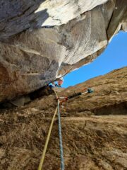 Bella via fatta con Eti e Fra', giornata limpida con un po' di vento. Spittata leggermente lunga, utili i friend medio piccoli, soste con catena…