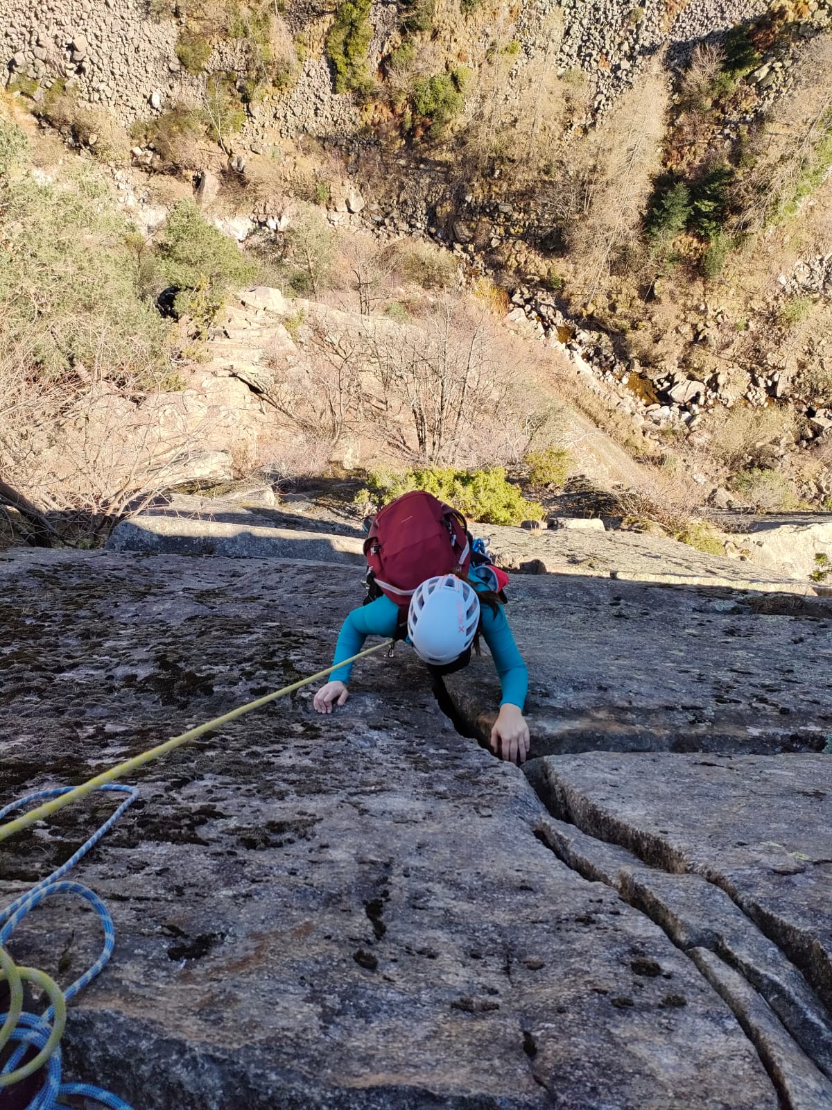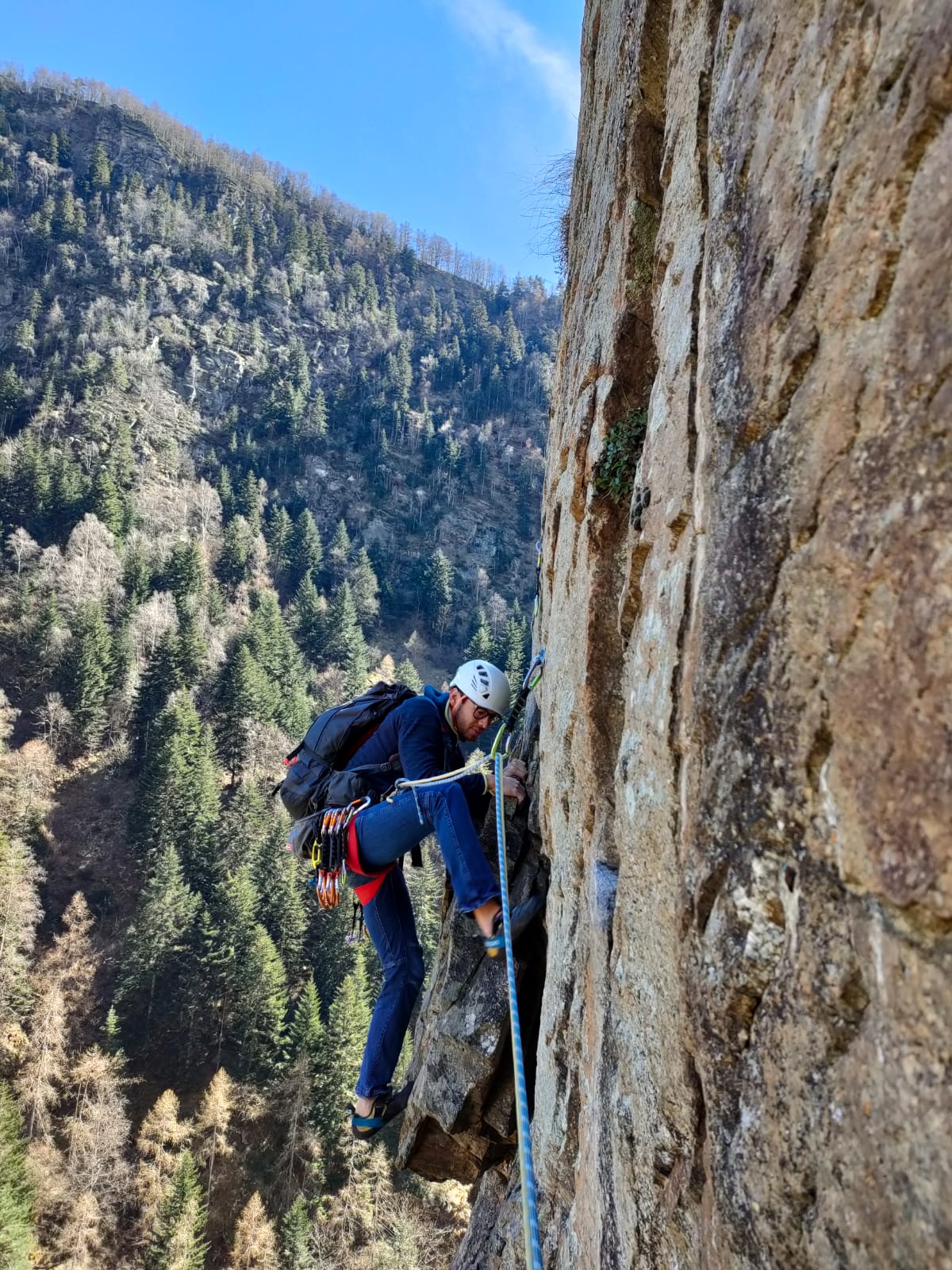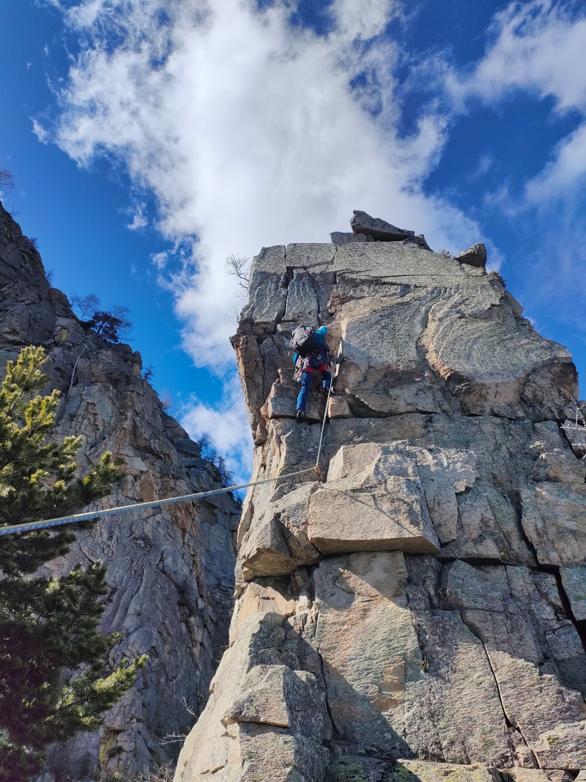 Bella via fatta con Eti e Fra', giornata limpida con un po' di vento. Spittata leggermente lunga, utili i friend medio piccoli, soste con catena…