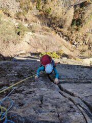 Bella via di 4 tiri di 105 metri, i primi 2 tiri più difficili sul 5a/b su placca e i successi facili. Soste con catena.…