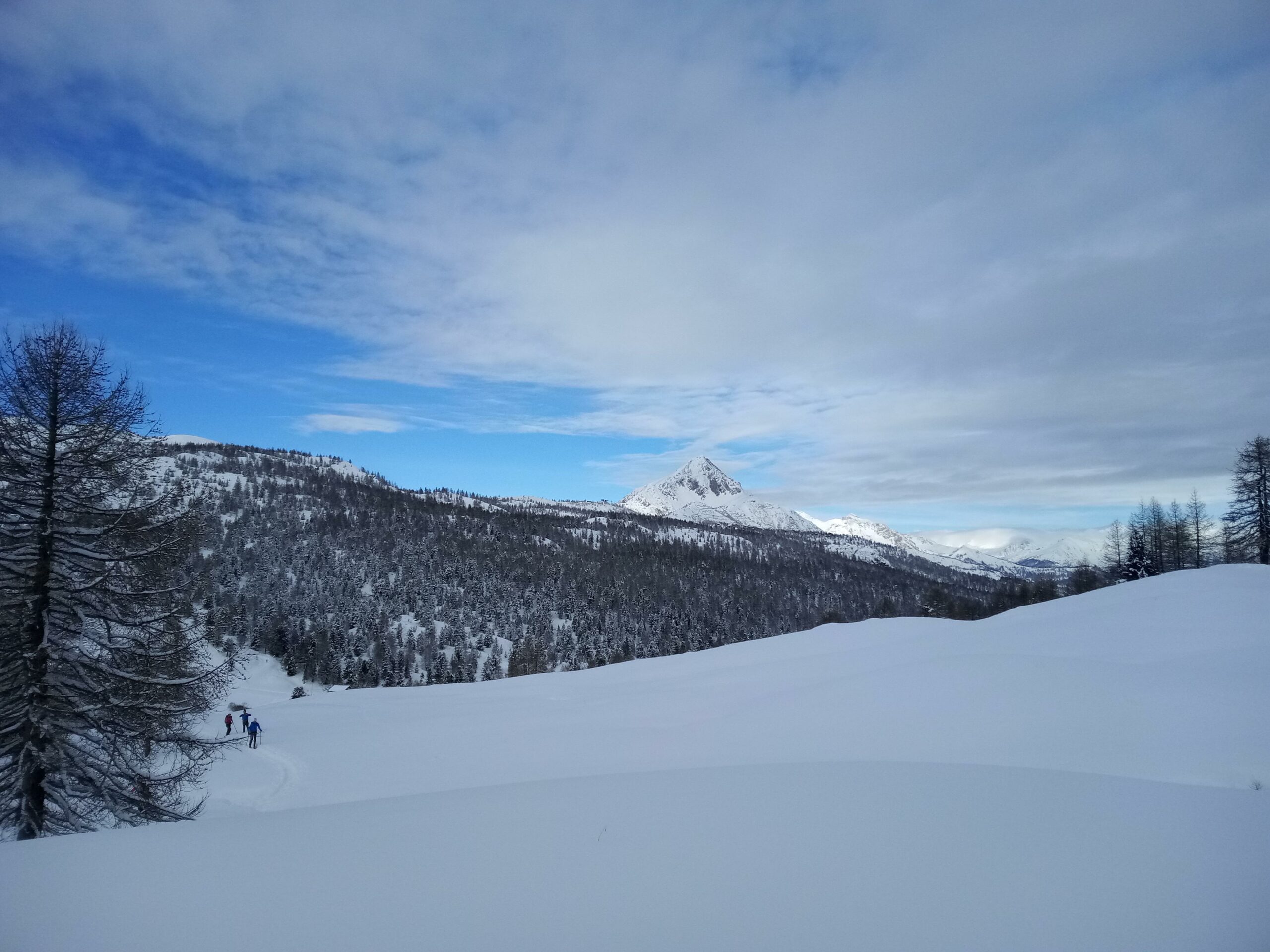 10cm di neve da Bardonecchia, poi c'è più neve nel bosco fino in qualche punto arrivare fino al ginocchio. Sopra il bosco il vento ha portato…