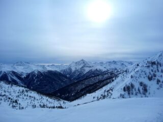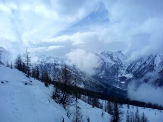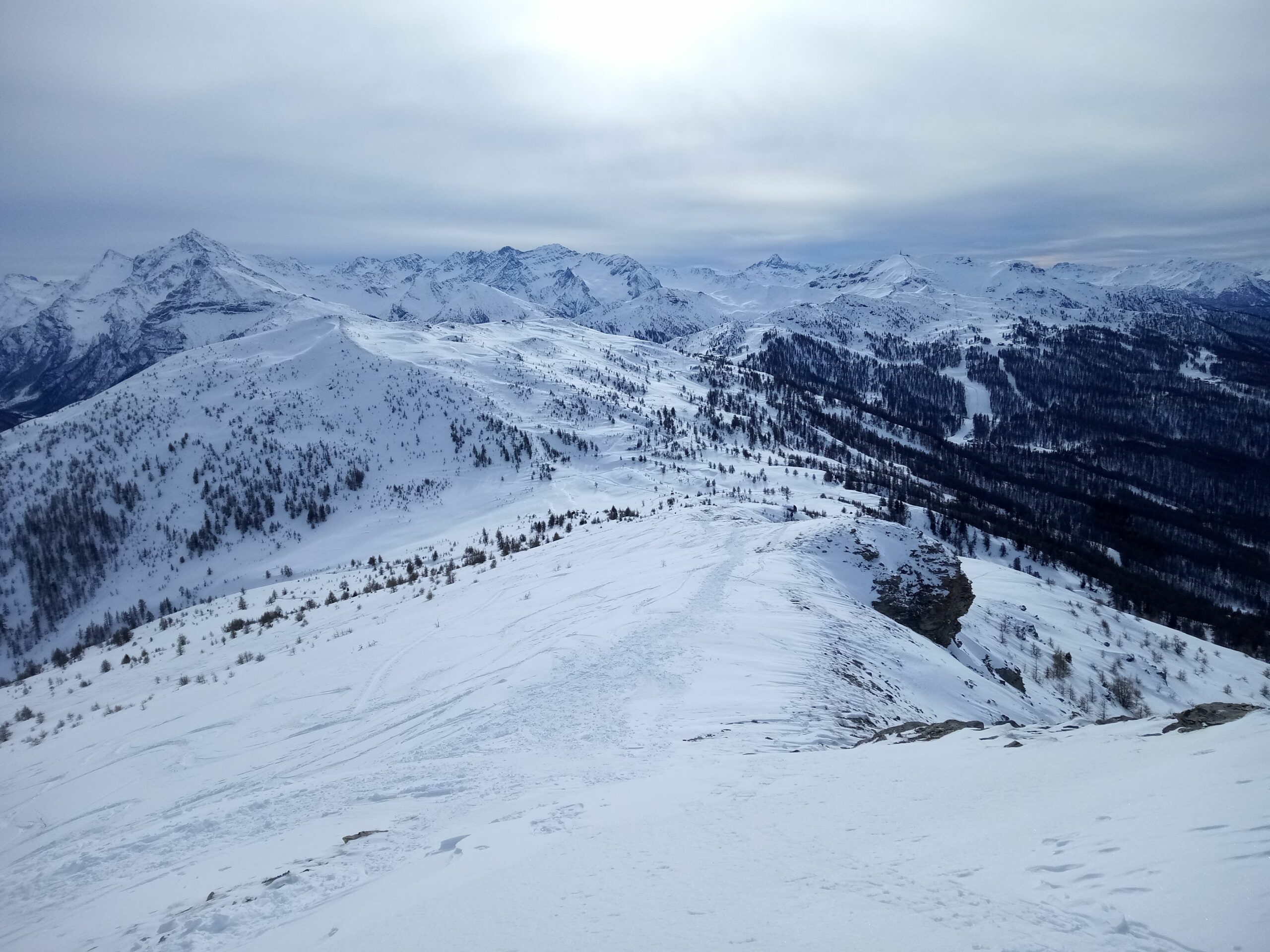 Vento foen fastidioso tutto il giorno, muro di nuvole sui 3000 al confine con la Francia, praticamente tutti innevati di fresca dai 2400m in su. Parte…
