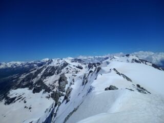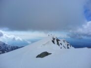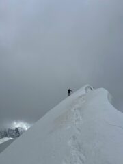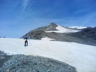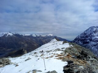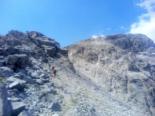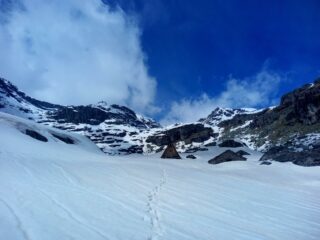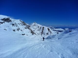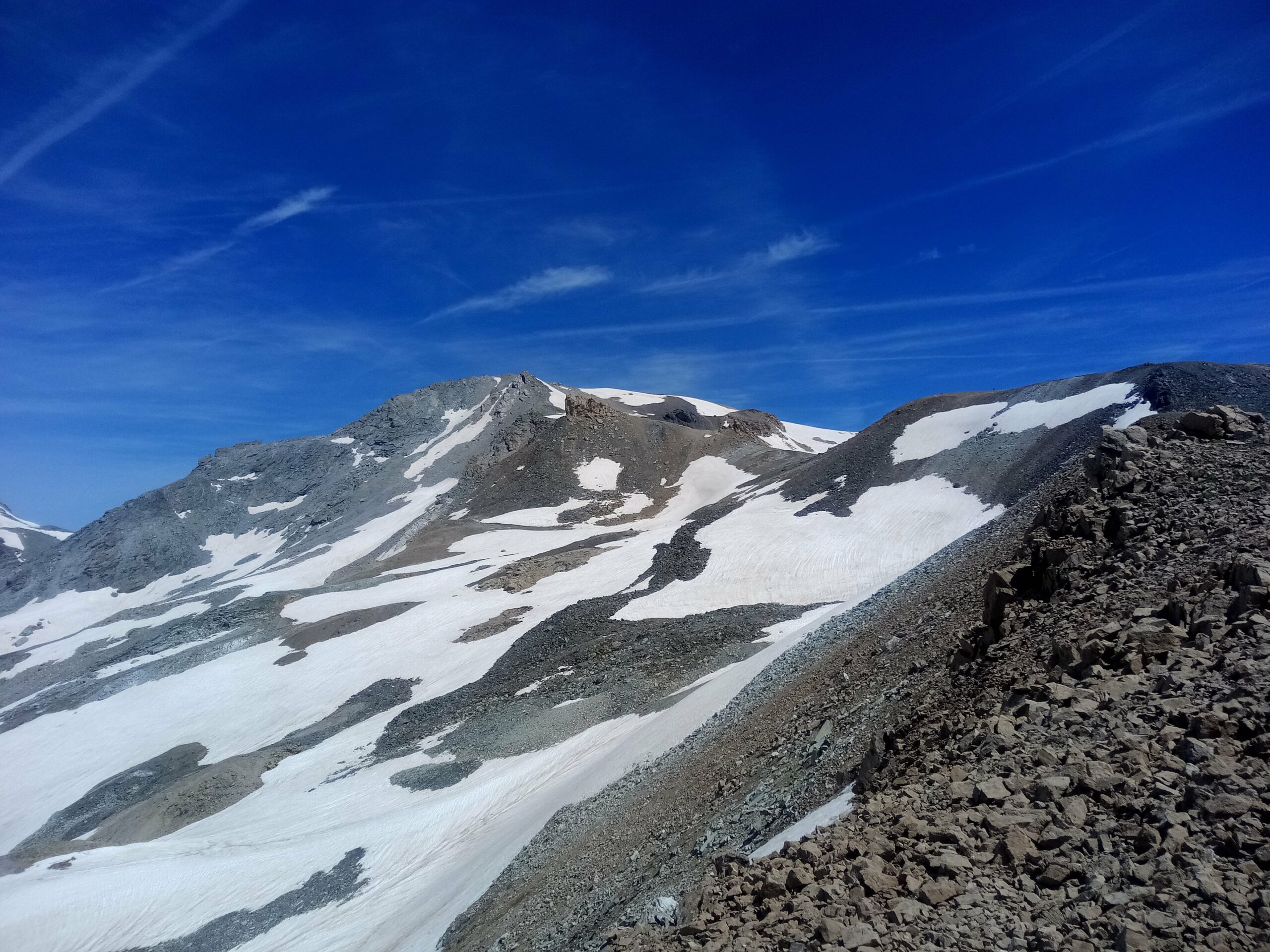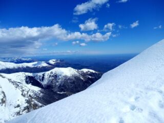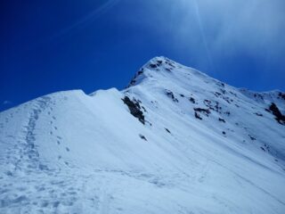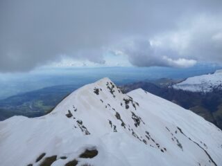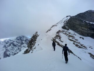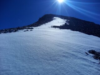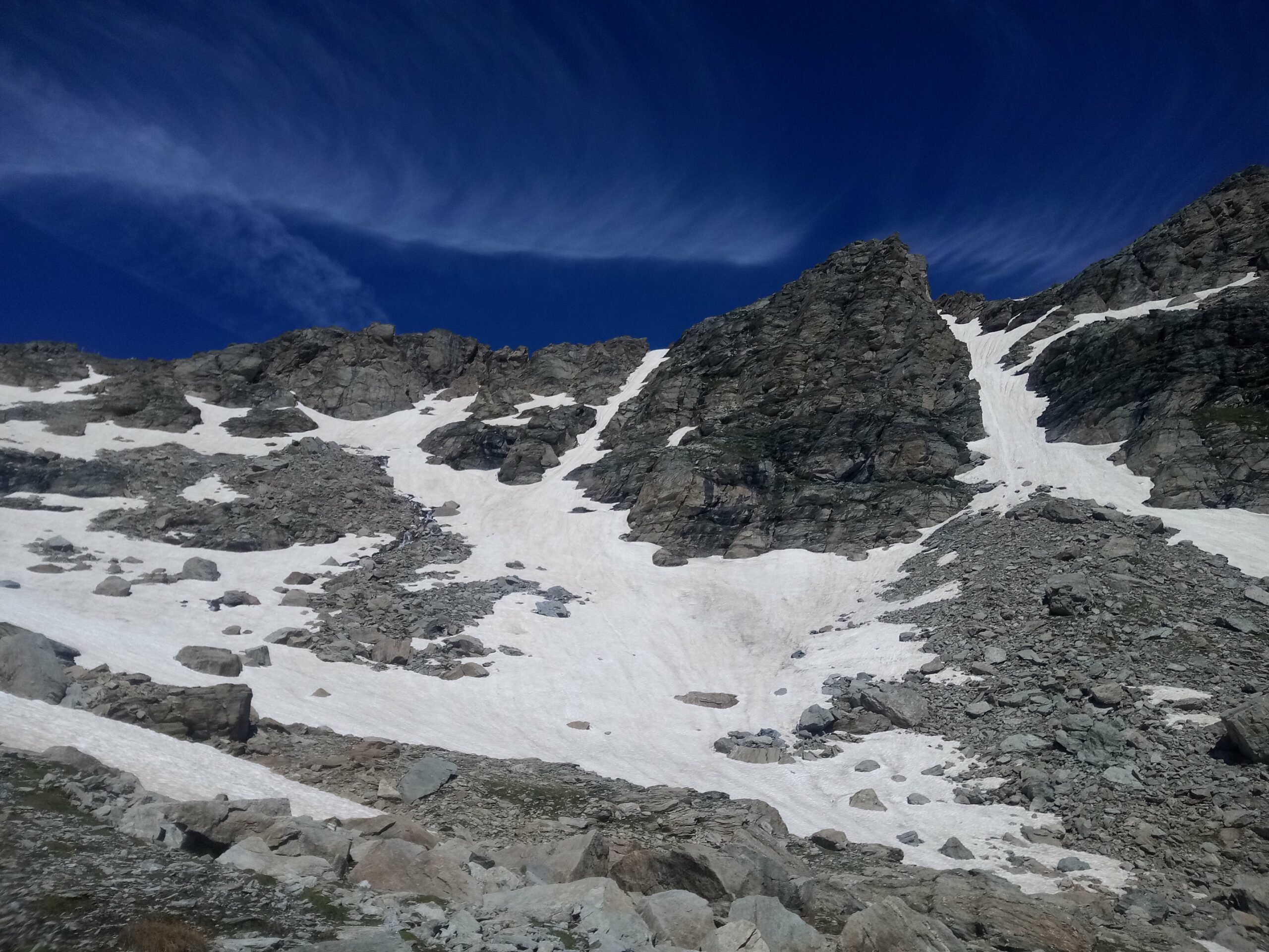 Umidità e basse temperature hanno reso più delicato l'ultimo tratto sfasciumoso. Nevaio già presente verso la punta, neve recente ma già dura. In qualche canale presente ancora…