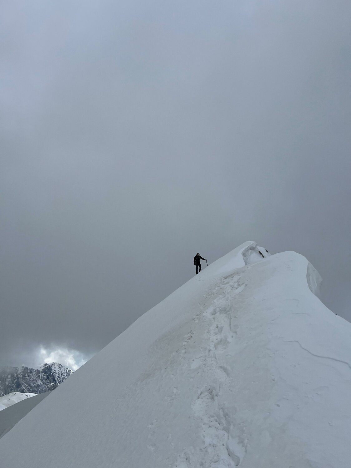 Ah si rimettono gli scarponi, un po' di ghiaccio e neve sul percorso ma aggirabili... Ramponi rimasti nello zaino... Neve comunque dura e zero vento! 1300md+…