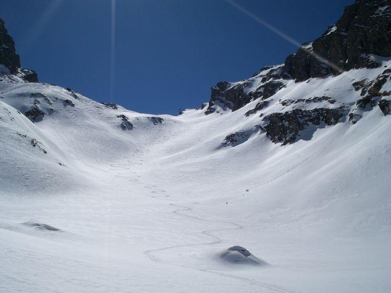 gita molto brutta. discesa su polentone di difficile sciata. pericolosi alcuni canali che incombono sui pendii, soprattutto sopra le baite in basso. sconsigliabile.