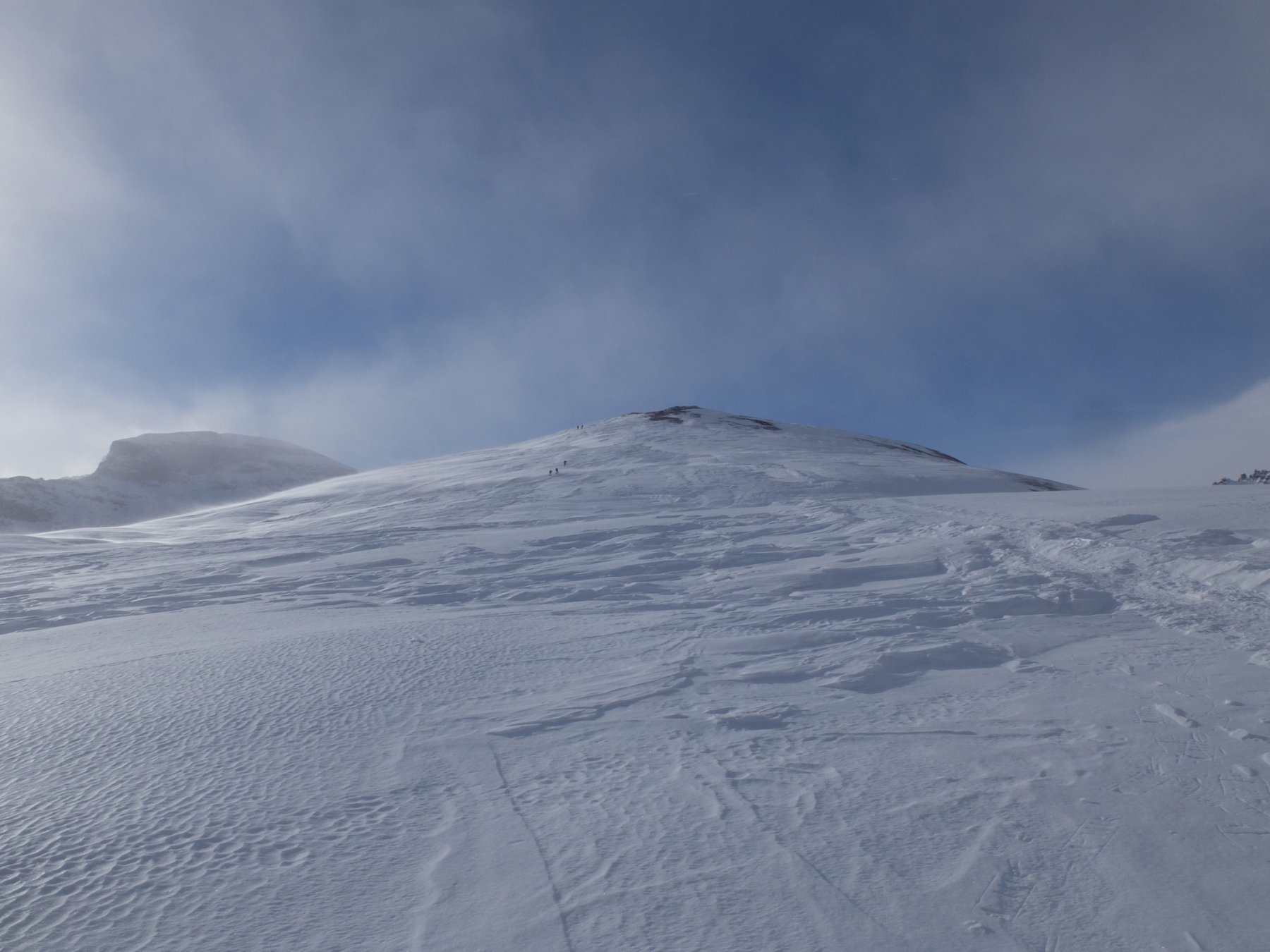 Sci ai piedi su tutto il percorso. In salita alcuni passaggi scomodi lungo il torrente. In alto il forte vento ha rovinato la neve rendendo…