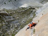 Penultimo tiro alla fine del diedro non farsi tentare da chiodo a sx. Ma uscire decisamente a dx.